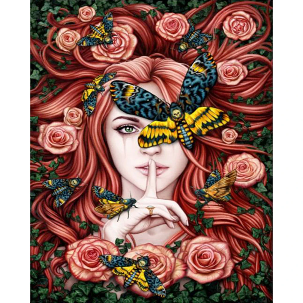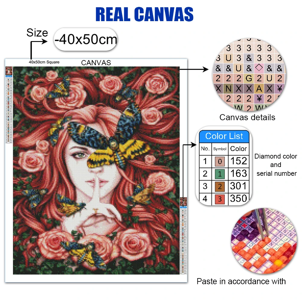 QIZITENG полный квадратныйкруглый искусство портрет девушки алмазна...