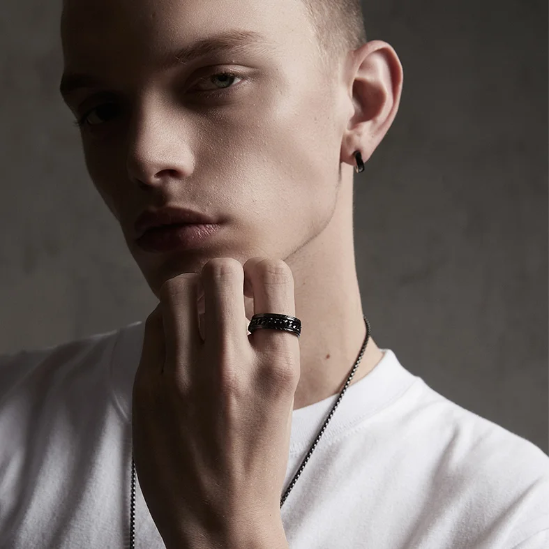 Вращающиеся кольца-антистресс для мужчин, титановая цепочка из нержавеющей стали, кольцо на палец, синее золото черный в стиле панк-рок, подарок