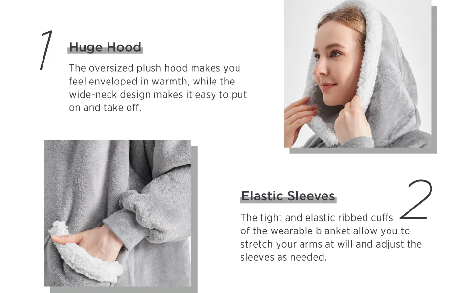Зимнее одеяло с капюшоном большого размера, Женский гигантский свит...