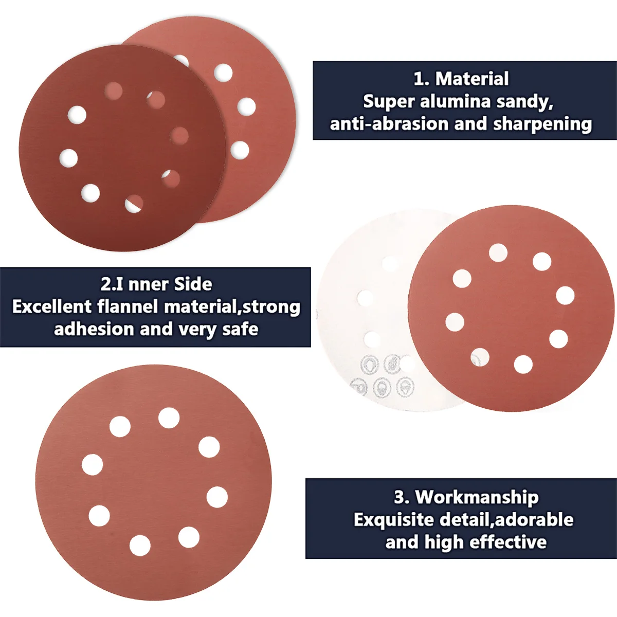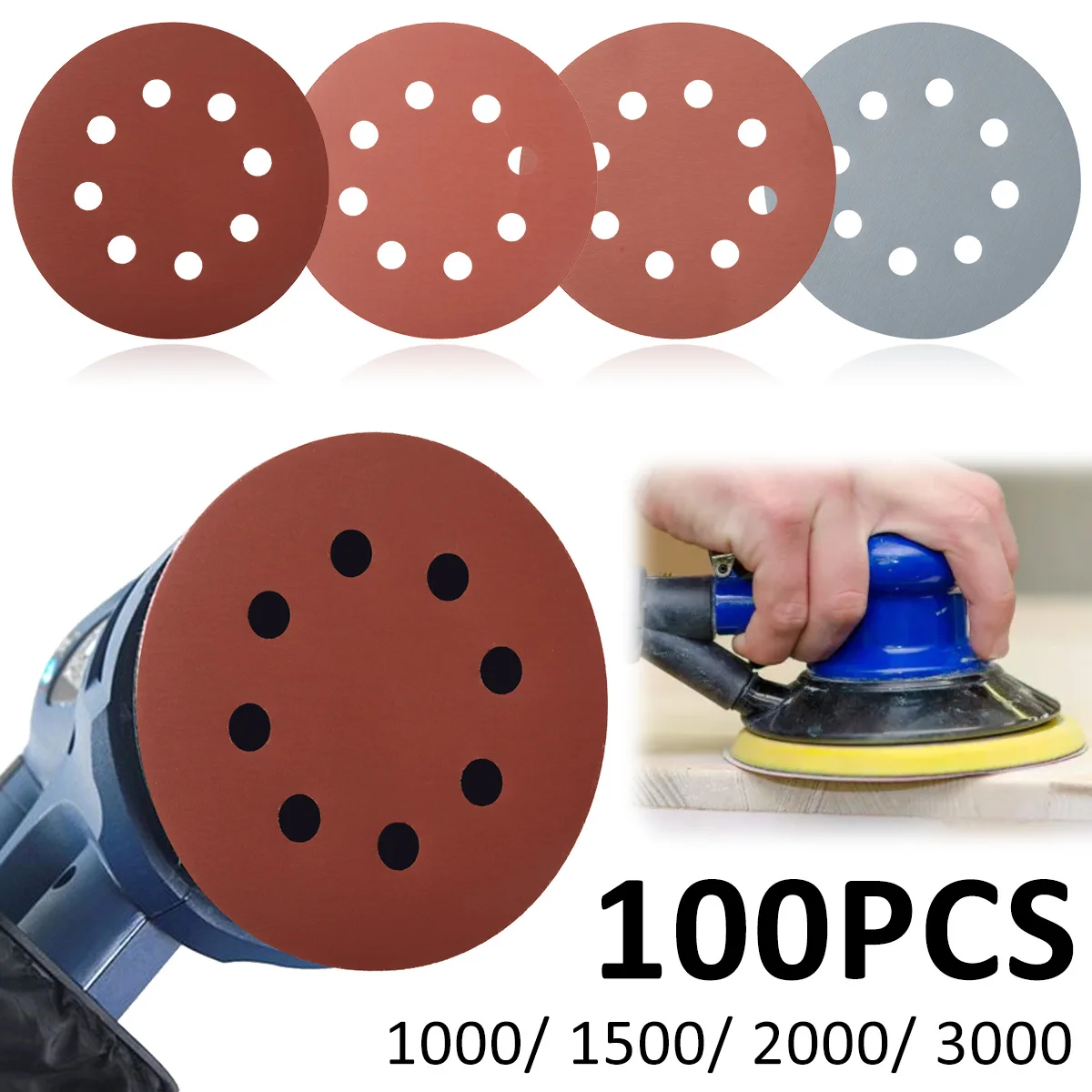 100 шт., Набор круглых шлифовальных дисков 5 дюймов 125 мм с 8 отверстиями, 1000-3000 дюйма