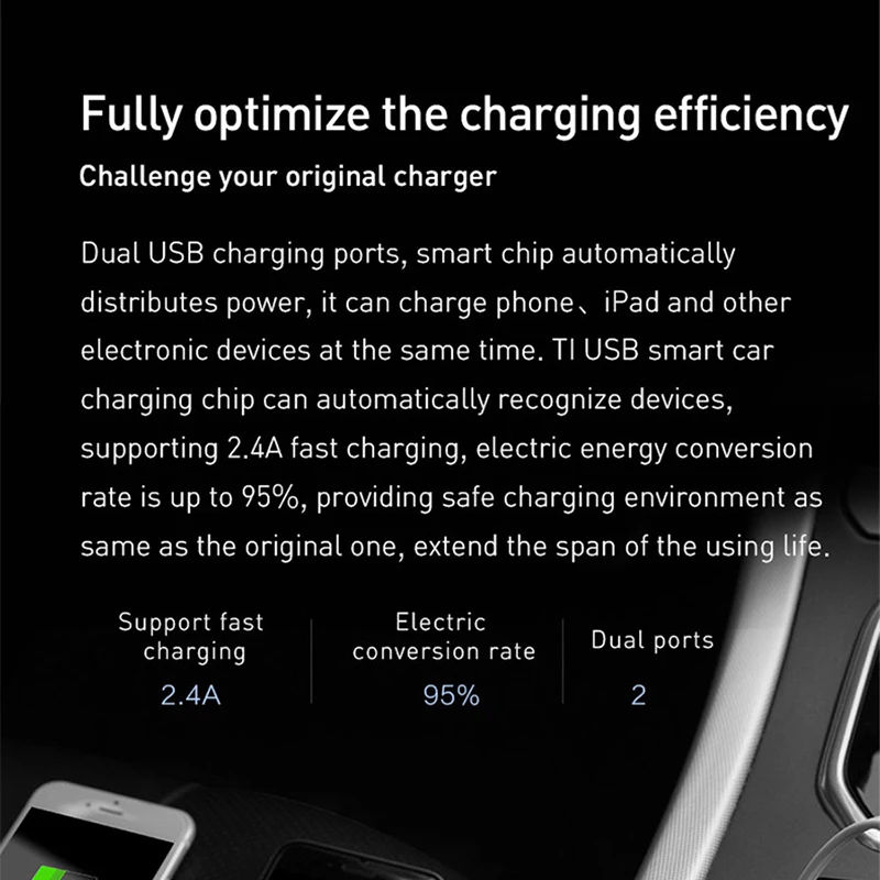Выход (автомобильное зарядное устройство): 5 В постоянного тока 2.4A x 2 (макс. 3.4A)