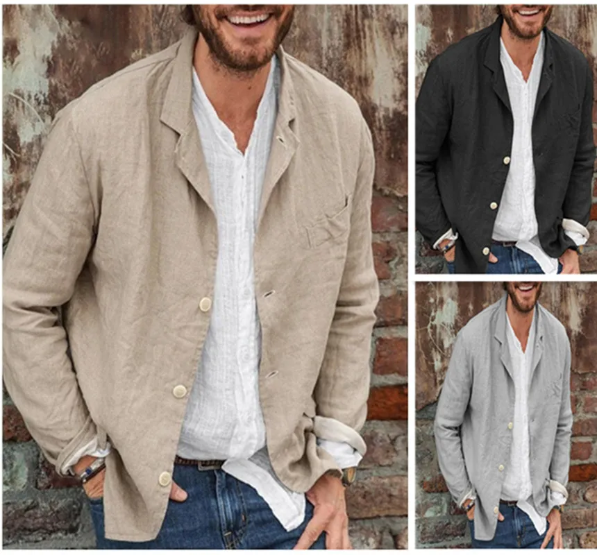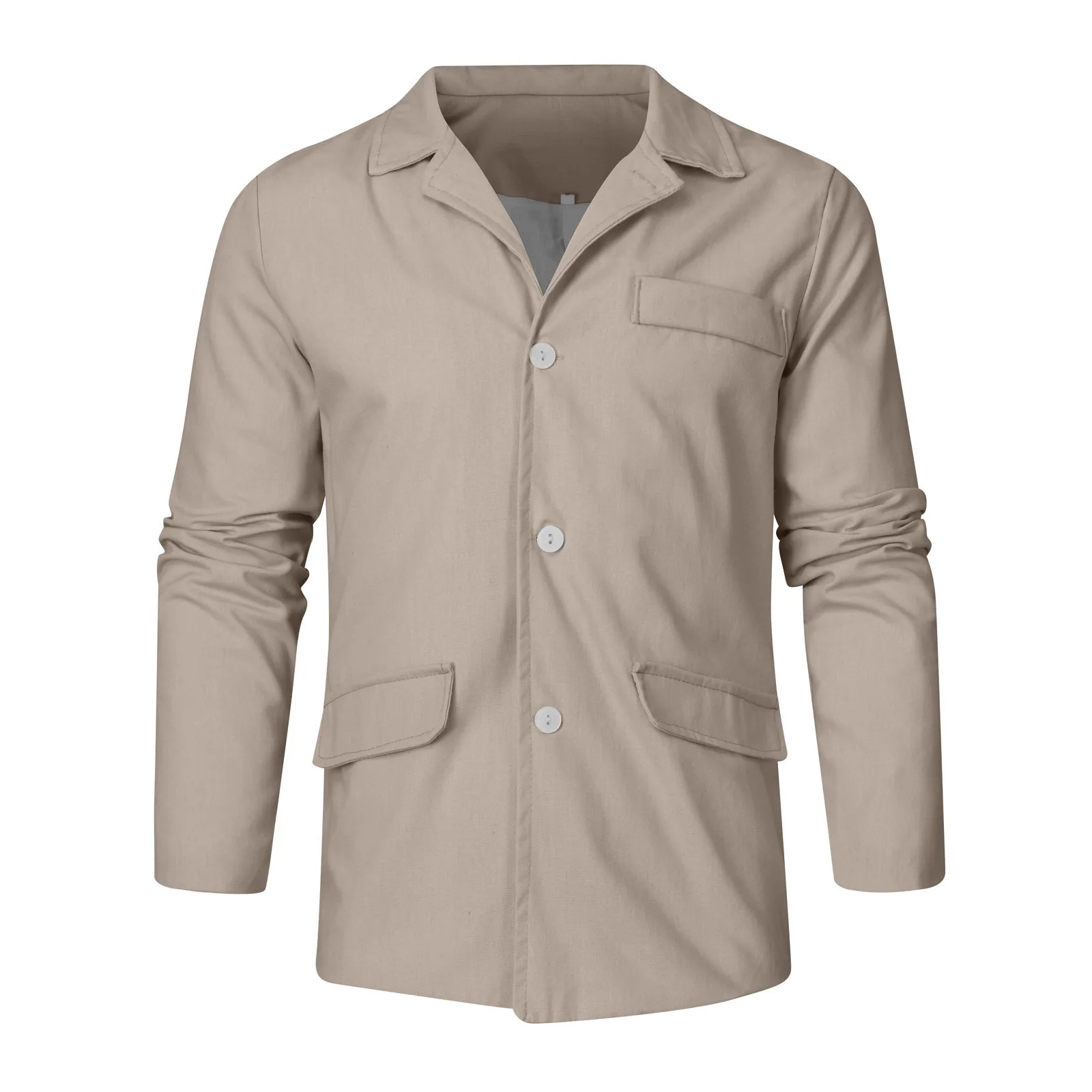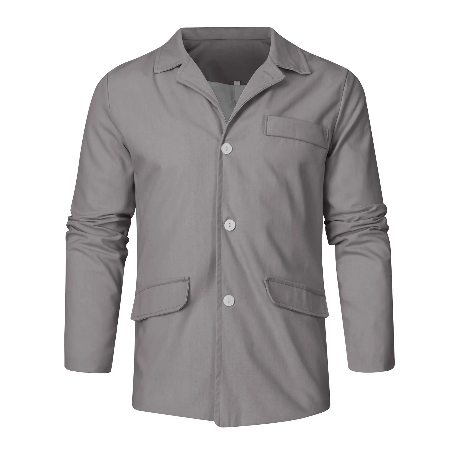 Куртка мужская однотонная с отложным воротником, хлопково-Льняная Повседневная Верхняя одежда, приталенный силуэт, пальто в винтажном стиле, осень 2021