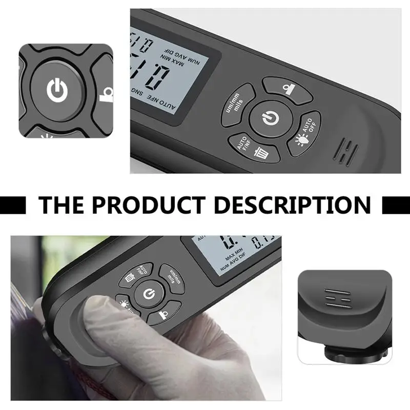 -Изготовлен из высокопроизводительного АБС-пластика и электронных материалов, он безопасен, долговечен и практичен.-Он имеет экран высокой четкости, что позволяет легко понять результаты теста.-Легко носить с собой, удобно для использования в любое время, будет вашим хорошим выбором.-Датчик толщины краски автомобиля безопасен, и он очень дружелюбен к вашему корпусу автомобиля.-Сделано с превосходным мастерством, он обладает отличной прочностью и не будет легко поврежден.Упаковочный лист