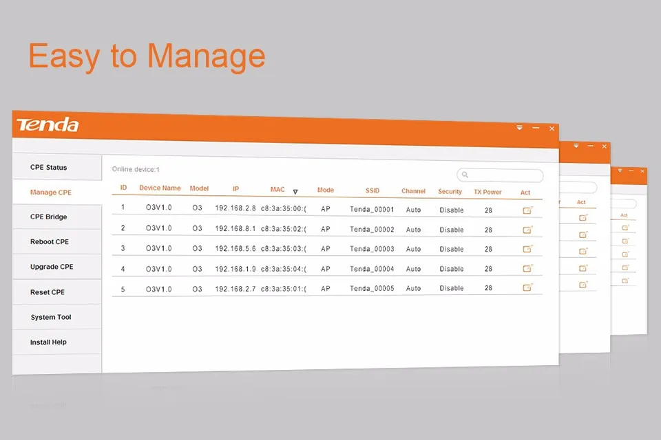 O3 также поставляется с централизованным программным обеспечением управления, которое помогает пользователям легко управлять всеми устройствами в своей сети с одного компьютера-CPE Assistant