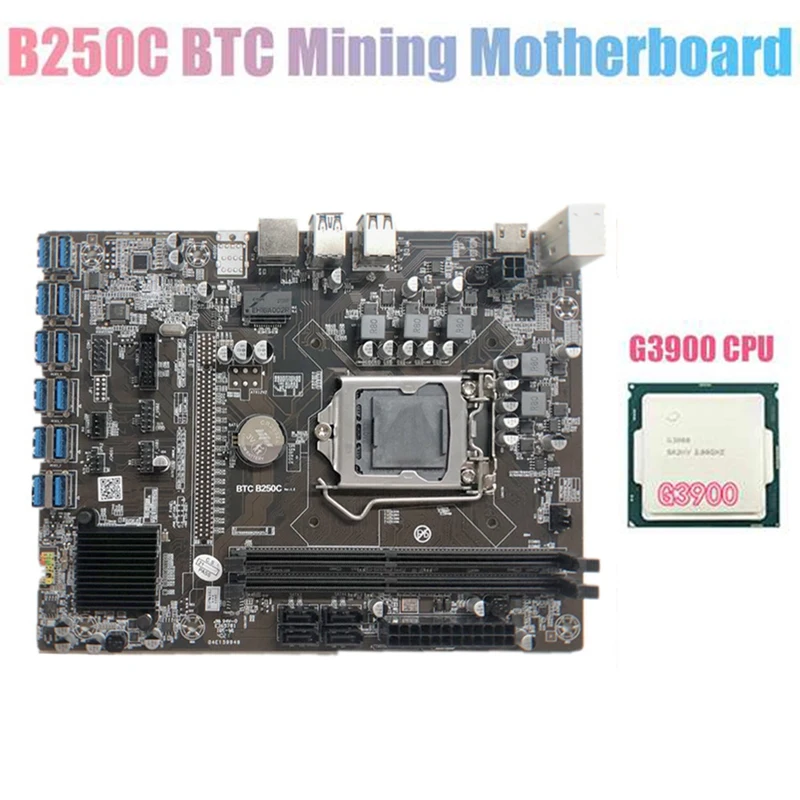 Материнская плата B250C для майнинга BTC с процессором G3900 12xpcie в разъем для графической карты USB3.0 LGA1151 поддерживает DDR4 DIMM RAM для BTC
