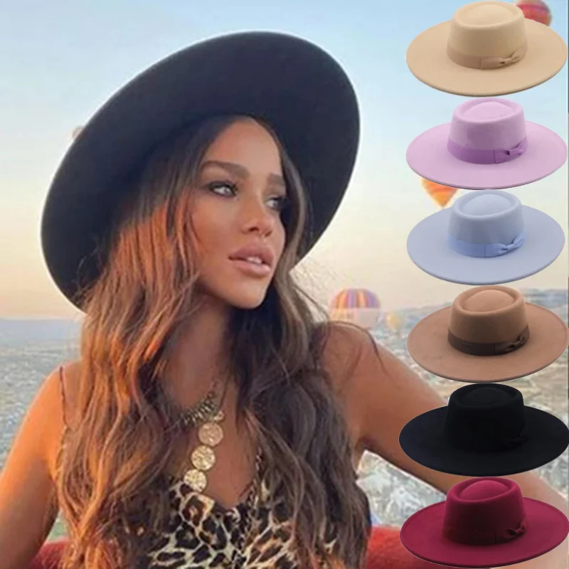 Классические Осенние фетровые шляпы с большими полями 9 см для женщин, винтажные шляпы в британском стиле хаки для церкви, Женская плоская джазовая Кепка
