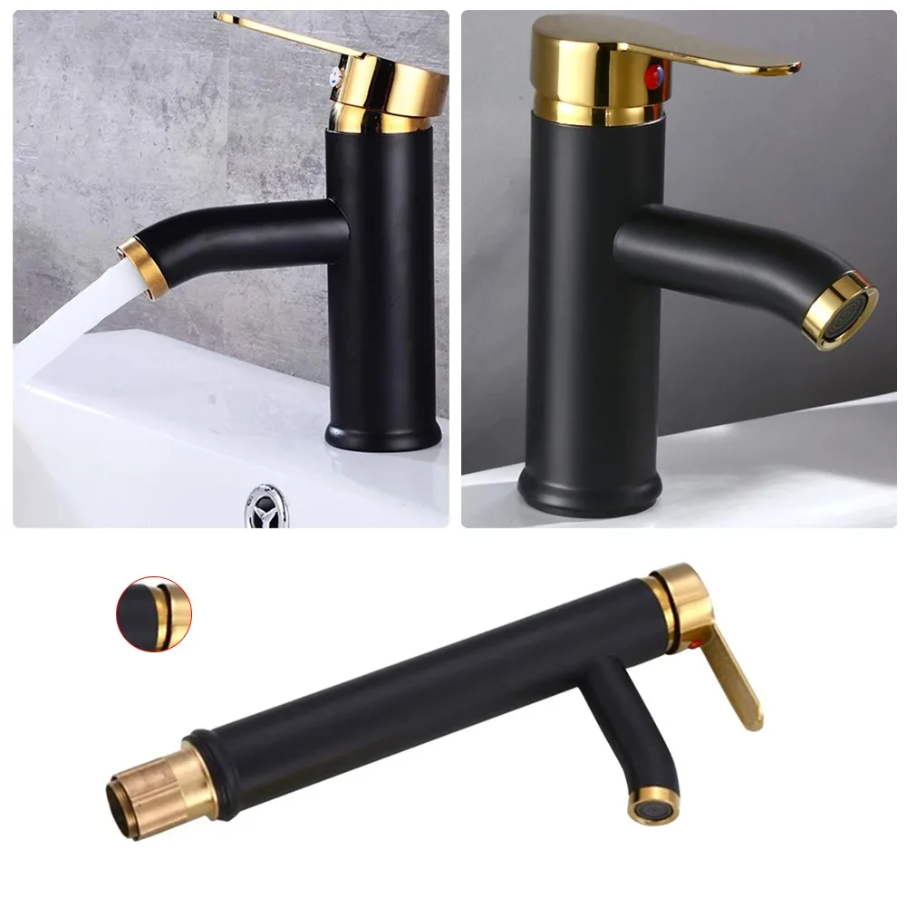 Смеситель для раковины в ванную комнату, кран для раковины с выпечкой, одно отверстие, одна ручка горячей и холодной воды, черный цвет