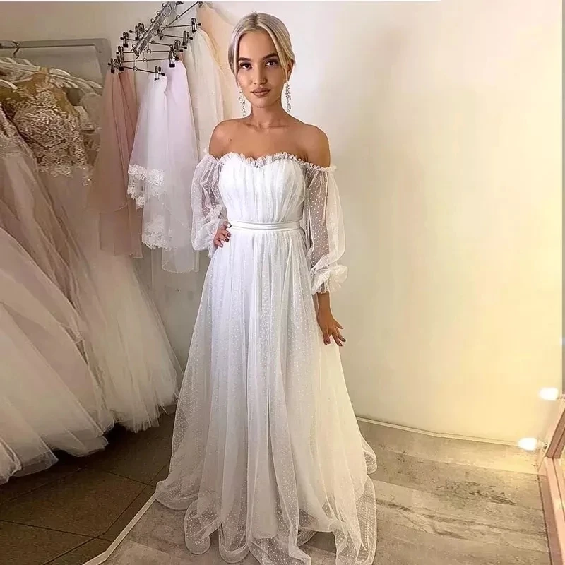 Пышное свадебное платье а-силуэт Свадебное платье 2022 рукава фонарики