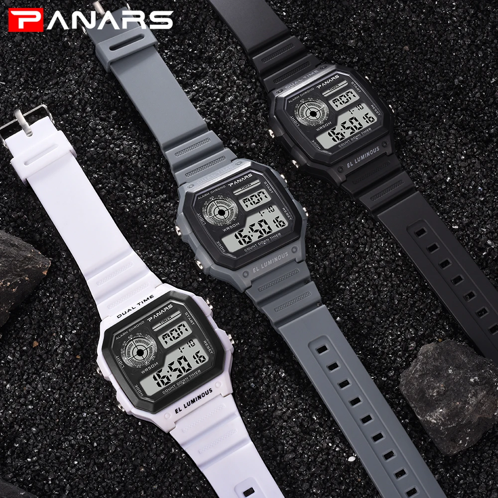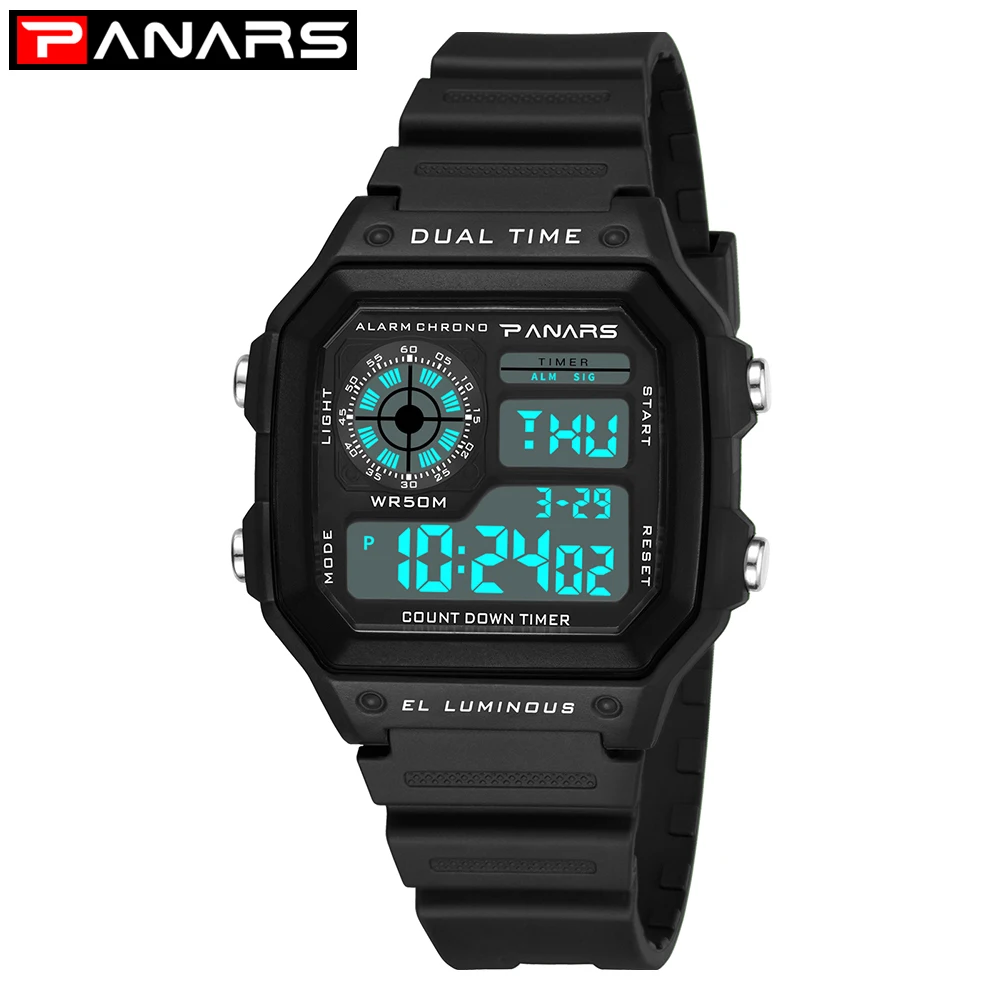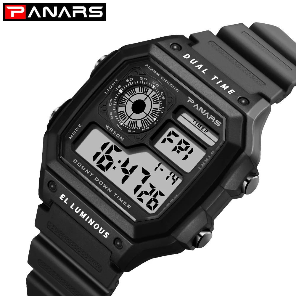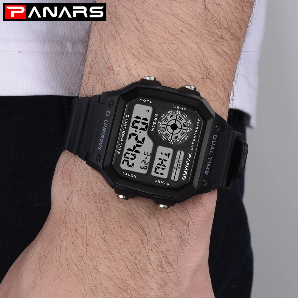 Часы PANARS Мужские Цифровые, спортивные водонепроницаемые светодиодсветодиодный винтажные квадратные наручные, G-образный удар, с вибрацией, 5 бар