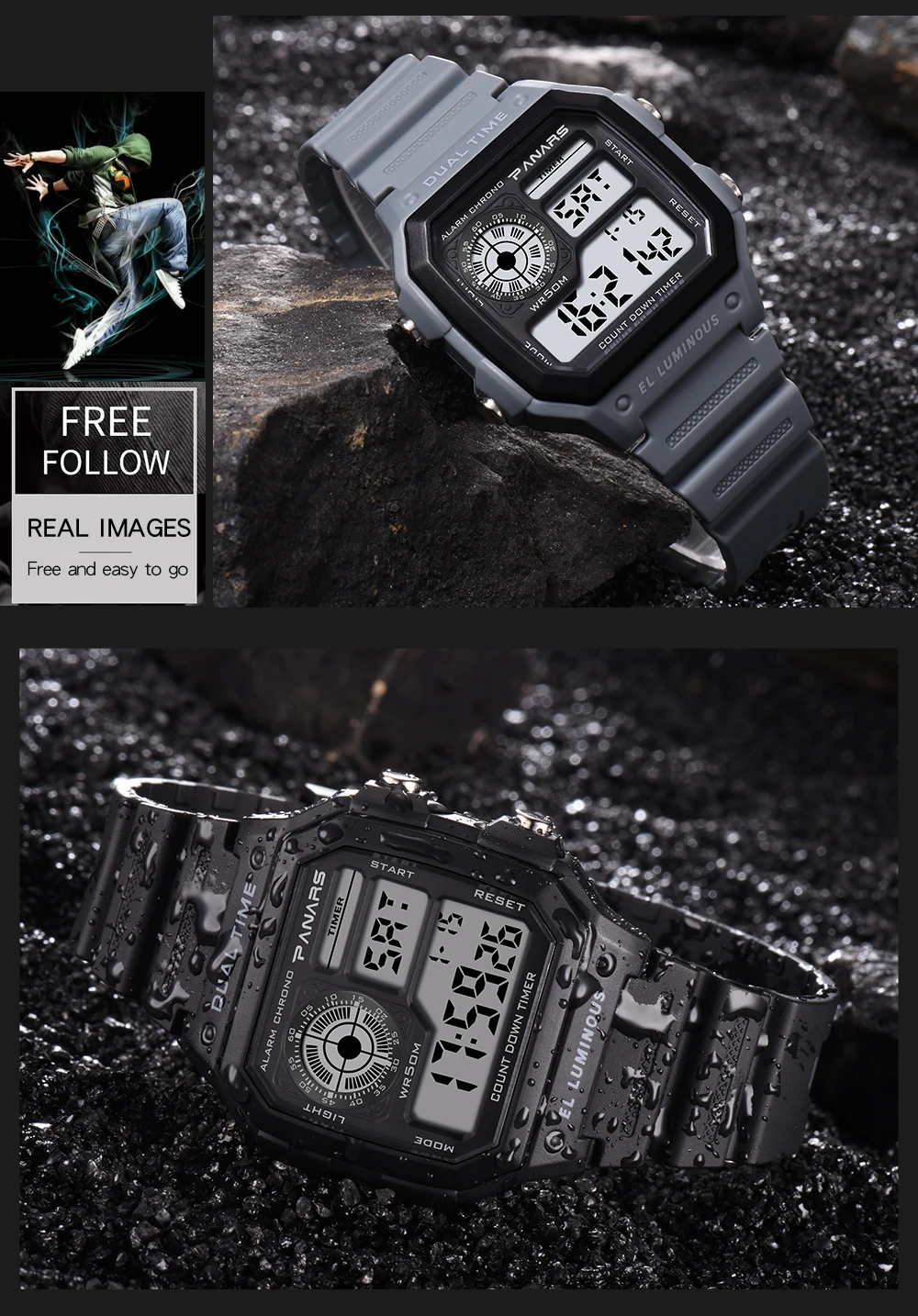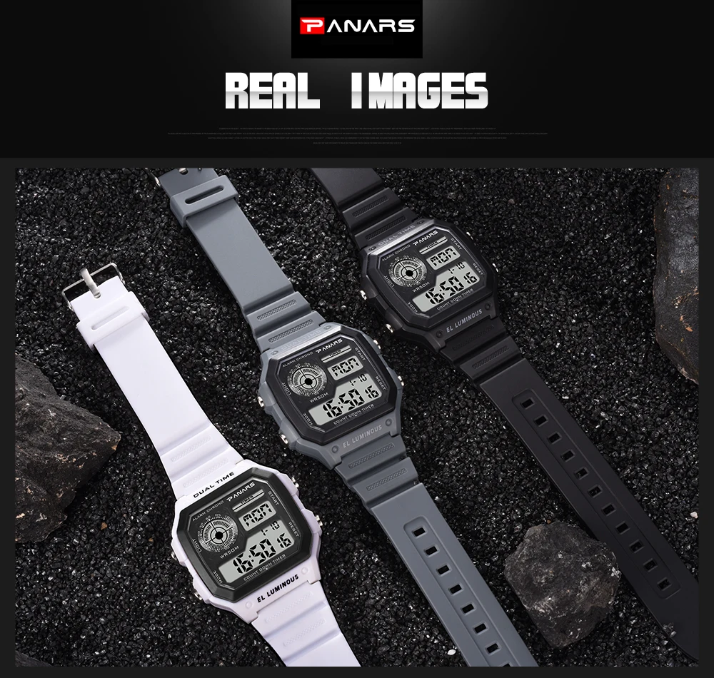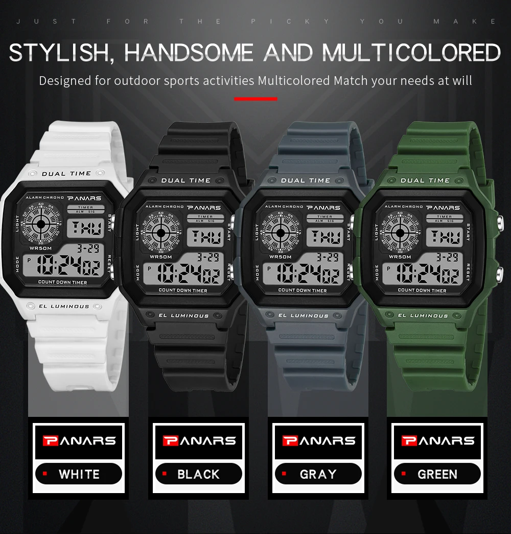 Часы PANARS Мужские Цифровые, спортивные водонепроницаемые светодиодсветодиодный винтажные квадратные наручные, G-образный удар, с вибрацией, 5 бар