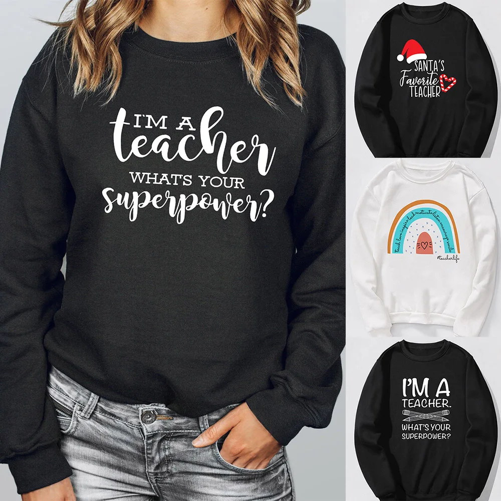 What's Your Superpower Teacher Life женские свитшоты Эстетическая Harajuku уличная толстовка женская зимняя одежда с длинным рукавом