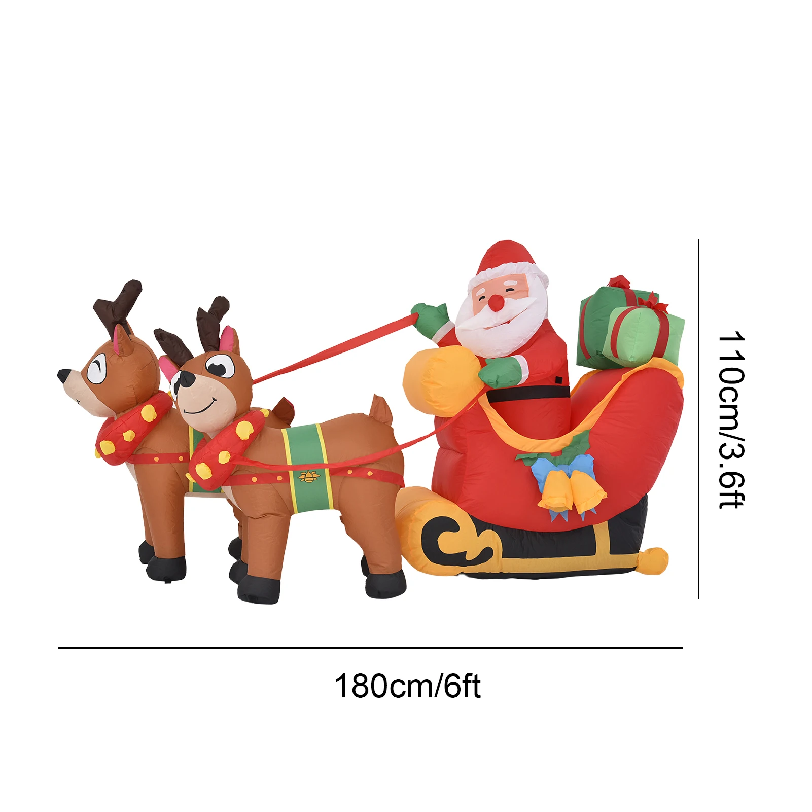 1 、 превосходные рождественские украшения: Интересный 5,9 ног Рождественский надувной Санта способен тянуть сани, который украшает семья вечерние в крытый для дома и сада, создавая интересные и праздничную атмосферу.2. Встроенный светодиодный светильник s: это Рождественское украшение имеет встроенный цветной светодиодный светильник для освещения двора во время фестивалей. Это станет идеальным выбором для Сочельник вечерние, благодаря чему ваш двор большую привлекательность для соседями, и это украшение станет самым привлекательным украшения.3. Премиум и безопасный: Украшение изготовлено из высококачественной полиэфирной ткани, которая многоразовая и легко складывается. Не нужно беспокоиться о том, что наши рождественские надувные изделия выдуваются ветром, твердый якорь может быть закреплен на земле. Для обеспечения безопасности наших продуктов мы провели испытания и сертификаты.4. Простота в использовании: Этот надувной Декор может быть прочно закреплен на земле, поэтому не волнуйтесь, рождественские надувные сани улетят с ветром. Он очень прост в использовании. Он поставляется с 10 футов удлинитель, наземный и веревки. Подключите источник питания, и надувная форма автоматически расширится в течение одной минуты.