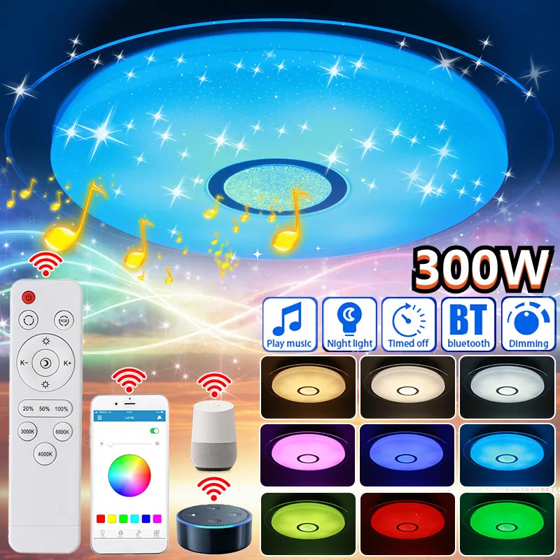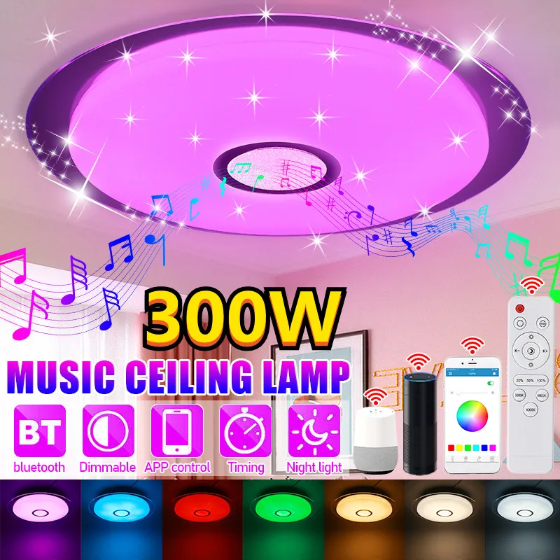 Современный светодиодный RGB потолочный светильник с Wi-Fi, 300 Вт, домашнее освещение, музыкальный светильник с APP и bluetooth, лампа для спальни, умный потолочный светильник с дистанционным управлением