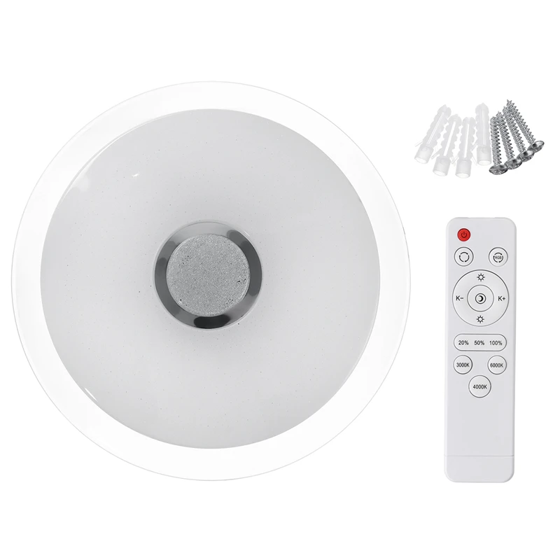 Особенности:* Изготовлено из Высококачественная светодиодная микросхема, толстый акрил, который обеспечивает долгий срок службы, долговечный для использования.* Умное управление: светильник может управляться различными способами, такими как настенный выключатель, Мобильный bluetooth и пульт дистанционного управления, что обеспечивает более удобное управление.* Мульти-Режим работы: он имеет много режимов, белый светильник, теплый светильник, нейтральный светильник, прочный светильник, режимы сцены, такие как музыкальный ритм, градиент, красочный светильник с подсветкой, чтобы удовлетворить ваши различные потребности гибко, очень практично для вашей повседневной жизни.* Мобильный bluetooth может регулировать яркость, менять цвет, пульт дистанционного управления может включать и выключать светильник, регулировать яркость и цвет, воспроизводить песни, регулировать громкость, это такой умный потолочный светильник, который изменит вашу концепцию на потолочный светильник, Это как верный компаньон, который позаботится о вашем настроении.* Энергосбережение: с ярким источником высокой мощности Светодиодный светильник, экономия большой мощности по сравнению с тем же уровнем яркости нормальный светильник, который не применяется светодиодный чип, экологически чистый.Характеристики:Диаметр: 40 смСветодиодный Тип: 2835SMDНапряжение: AC110-265VМатериал: чехол из поликарбоната + железоЦветовая температура: 3000-6500KСветильник Цвет: белый, теплый белый, RGB (красный, зеленый, синий)Режим управления: настенный выключатель + Мобильный контроль + пульт дистанционного управления + WIFIСветильник режимы: подстраиваются под тусклый или яркий, ритм музыки прозрачный градиентный фон красочный flashinging светильникПрименение:Для детской комнаты, спальни, гостиной, конференц-зала, кухни, гостиной, зала, кухни, ванной комнаты, прихожей, лестниц, мастерских и выставок и т. д.Упаковочный лист:1x светодиодный потолочный светильник1 сумка для аксессуаров1x пульт дистанционного управления