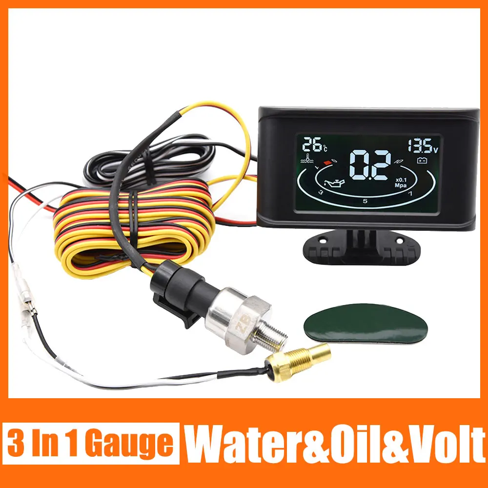 12 В 24 в 3 в 1 Универсальный ЖК цифровой датчик температуры воды для грузовика автомобиля Масляный Пресс ure измеритель вольтметр с 10 мм 18 NPT датчик масляного пресса