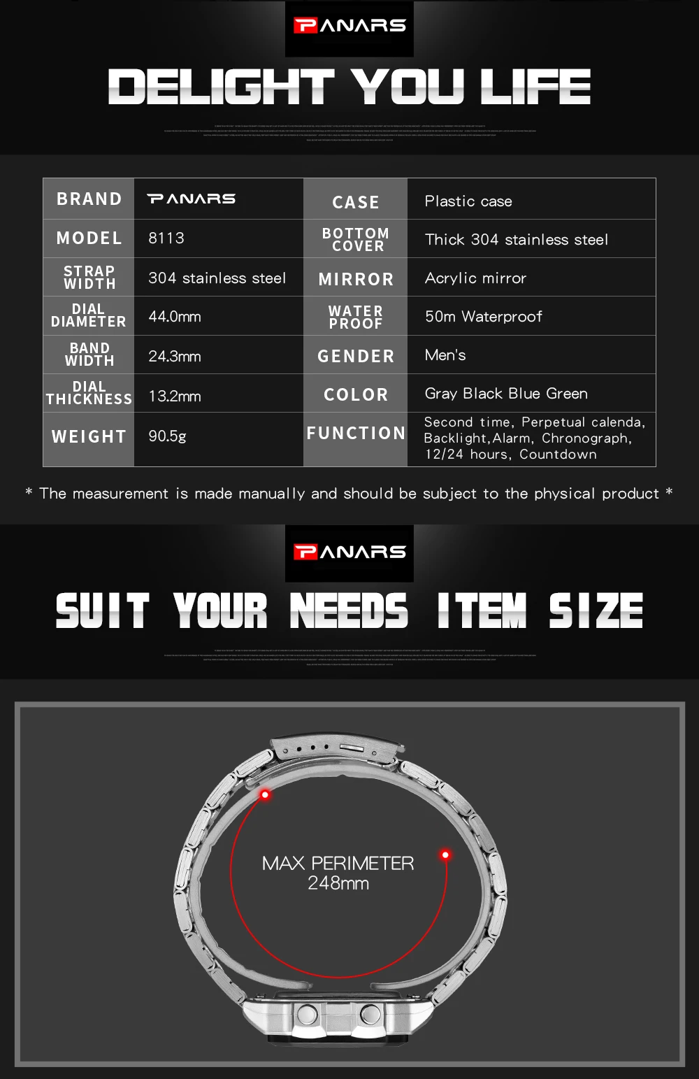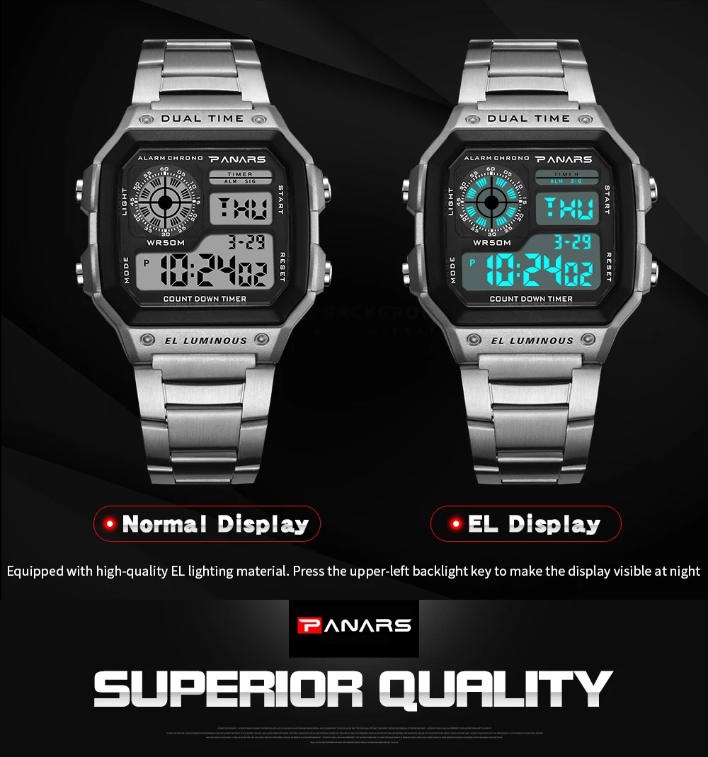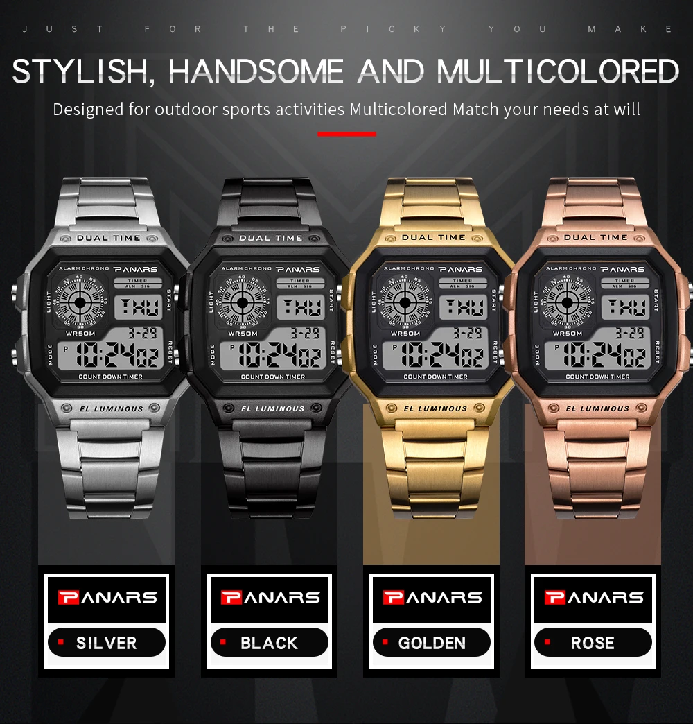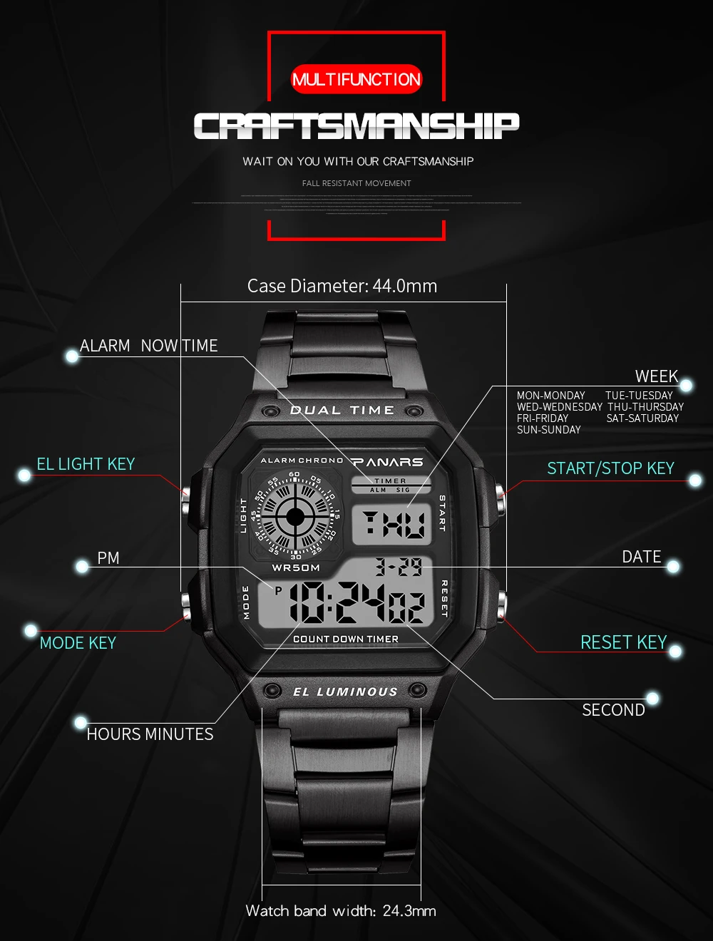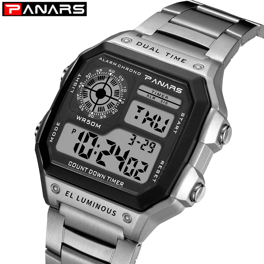 Часы PANARS Мужские Цифровые, деловые водонепроницаемые наручные, с ремешком из нержавеющей стали, 5 бар, подарок для мужчин