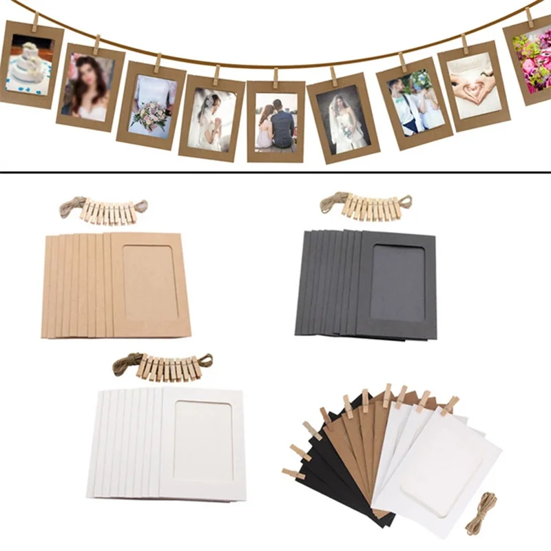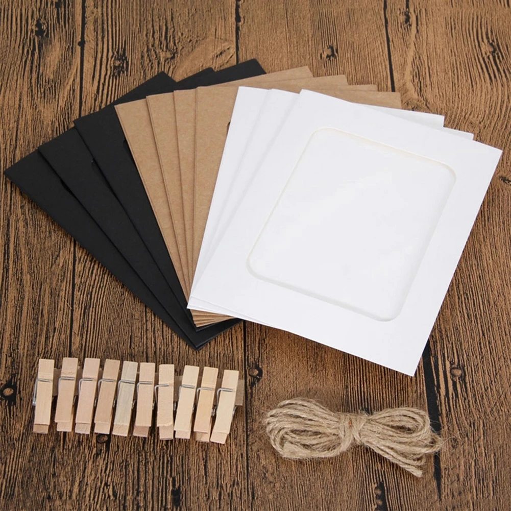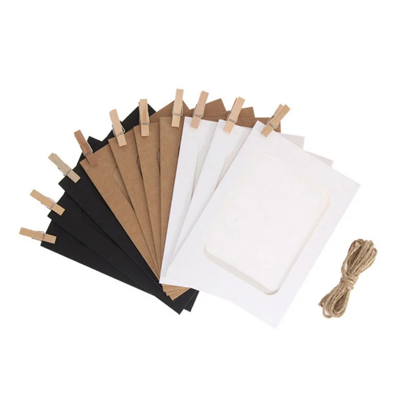 Фоторамка из крафтовой бумаги сделай сам, 10 шт., с зажимом, веревка 2 м, фоторамка для подвешивания стен, альбом диагональю 345510 дюймов, реквизит для украшения дома