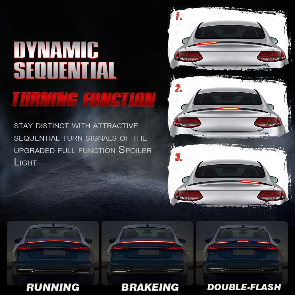 Универсальный светодиодный задний спойлер из углеродного волокна, 130 см, лампа для багажника автомобиля, многофункциональная лента стоп-светильник, 12 В, предупреждение