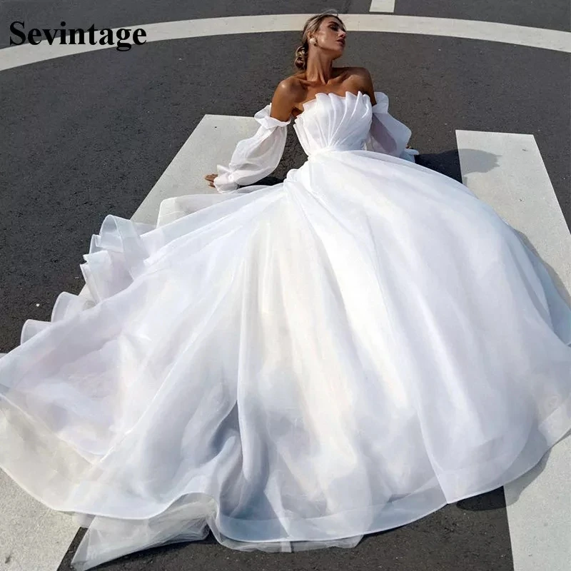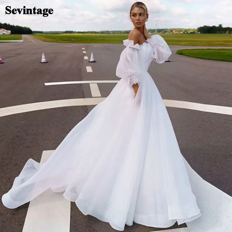LORIE Свадебное платье из органзы со съемным пышным рукавом Свадебн...