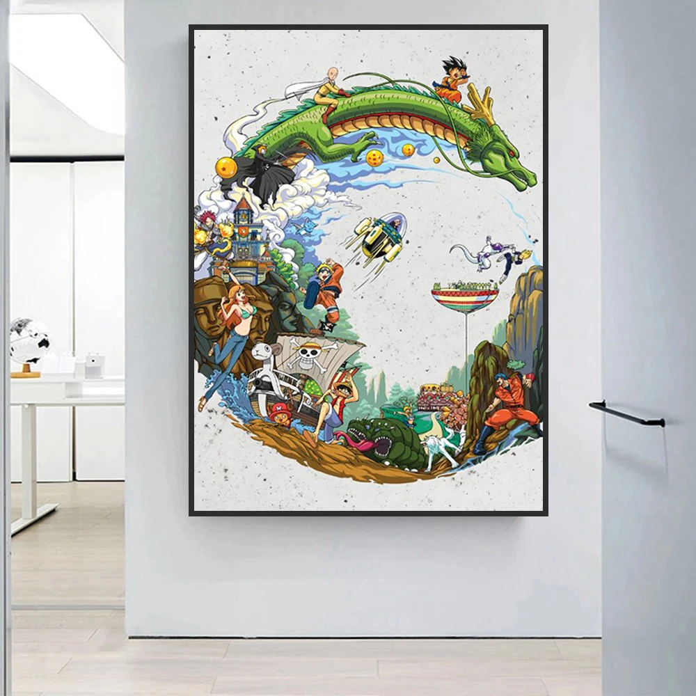 Аниме Наруто Гоку Луффи живопись современный художественный плакат ...