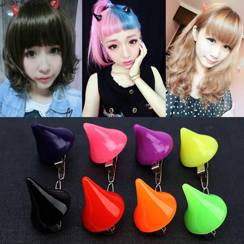 Флуоресцентный дьявол, резиновый Гудок с зажимом, милая верхняя заколка дьявола, боковая заколка, цветной однотонный мужской и женский головной убор для мужчин