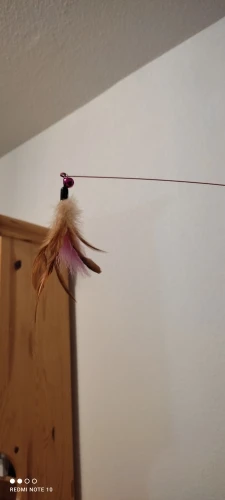 Материал: пластиковый стержень (длина около 15 см) + стальной провод (около 80 см) + натуральный цвет перьев (около 15 см)