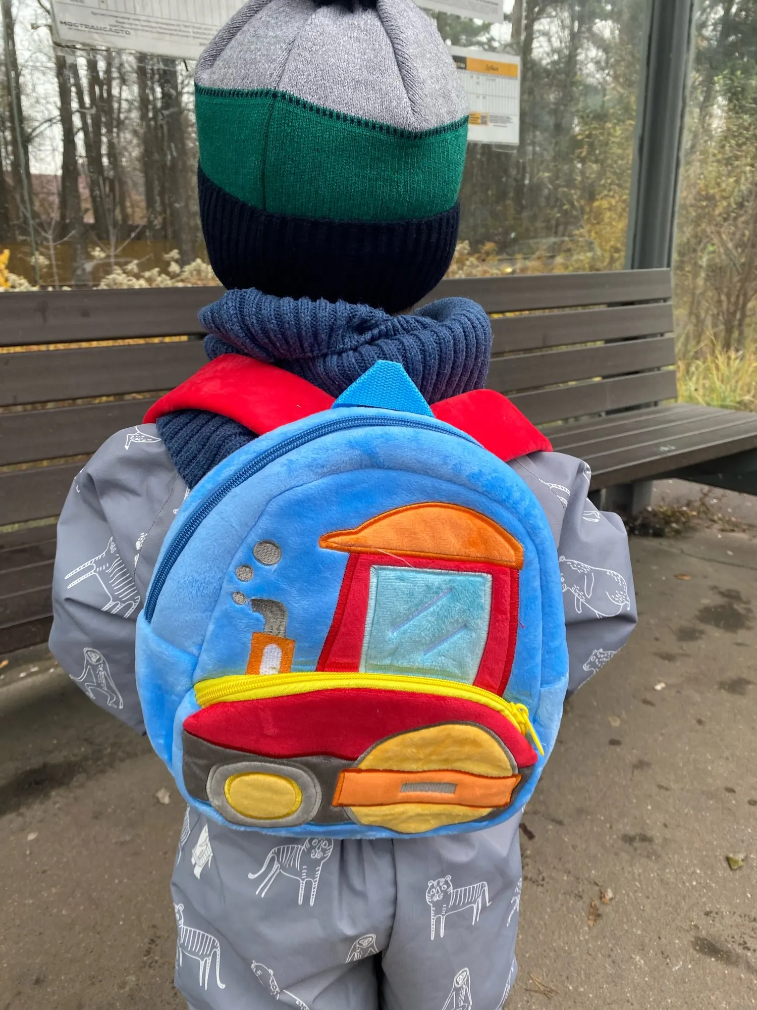 Детский плюшевый рюкзак с машинками, на возраст 2-4 года