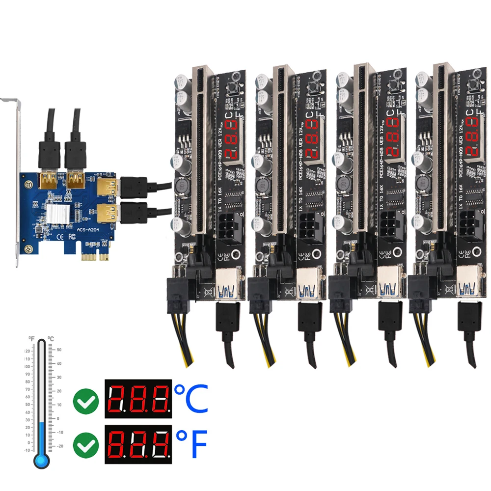 Райзер VER12X с температурным 6Pin PCI-E PCIE PCI Express, мультиплексорная карта GPU 1X X16, USB-адаптер для майнинга BTC