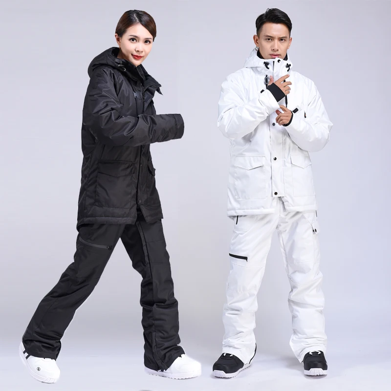 Женские лыжные комплекты-30, одежда для сноуборда, водонепроницаемые ветрозащитные зимние костюмы, лыжная куртка + подвесные штаны на бретельках для мужчин