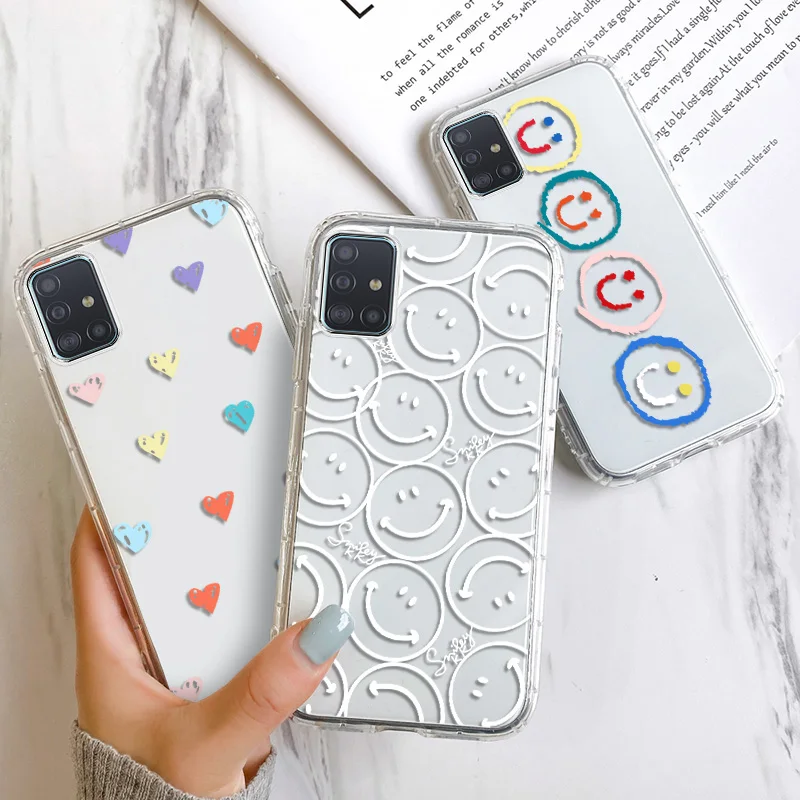 Чехол Smile Face для Samsung A51, чехол для Galaxy S20 FE S21 Ultra, чехол для A31, A52, A50, A52S, 5G A71, A21S, A12, A10, A72, A32, A02, прозрачный чехол