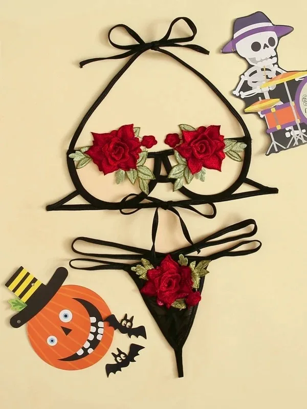 Женское кружевное нижнее белье с вырезом в виде Розы, облегающая пр...