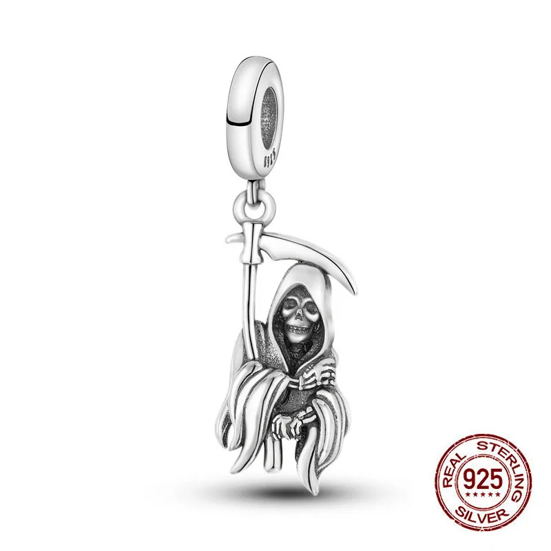 Новый искусственный серебряный браслет с черепом, ведьмой, мрачным жнецом, головой тыквы, летучая мышь, подходит для оригинального браслета Pandora, украшения на Хэллоуин