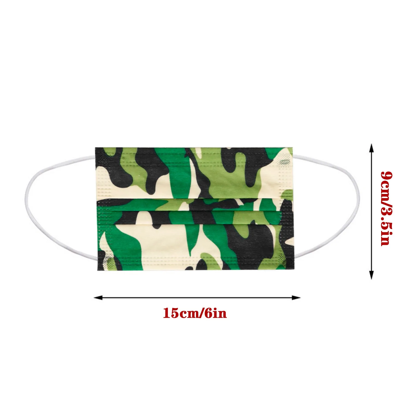 Маска детская одноразовая с 3-слойным фильтром, утепленная с камуфляжным принтом, маска для лица с заушными петлями, 50 шт.