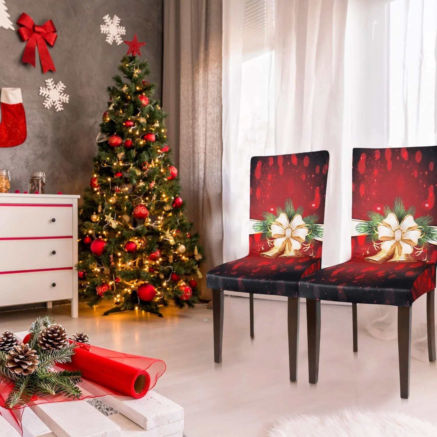 Рождественские чехлы для стульев с изображением Санта-Клауса, эластичные растягивающиеся обеденные стулья, чехол для кресла, чехлы для кухонных сидений, домашний декор, Hogar Sillas
