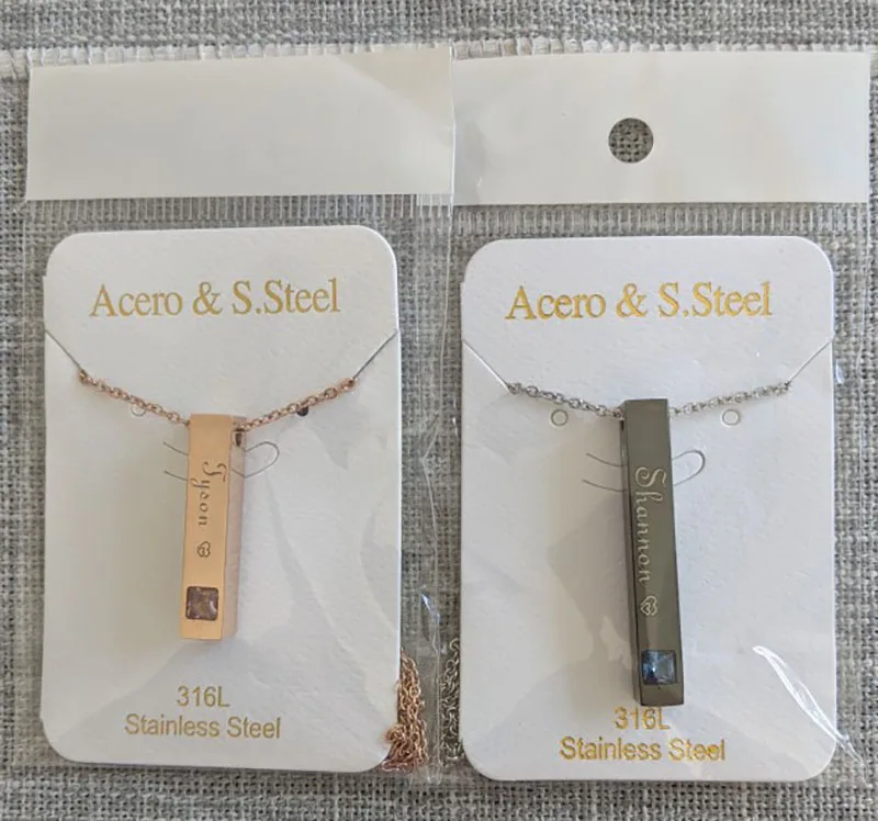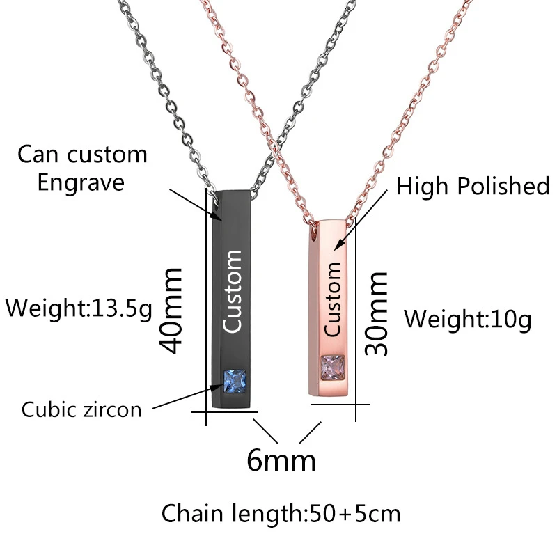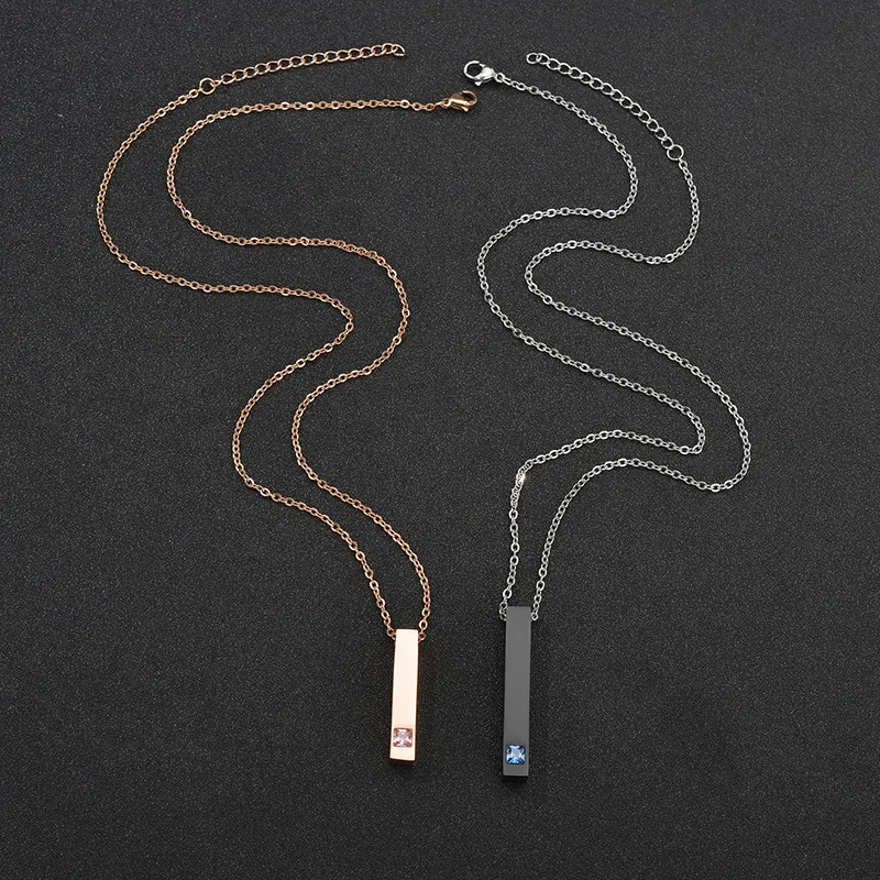 2021 гравированное ожерелье из нержавеющей стали с вертикальной штангой имени пары персонализированное ожерелье с голубым розовым камнем для женщин и мужчин ювелирные изделия