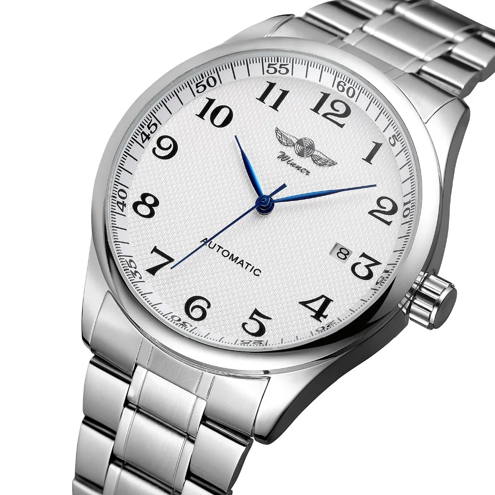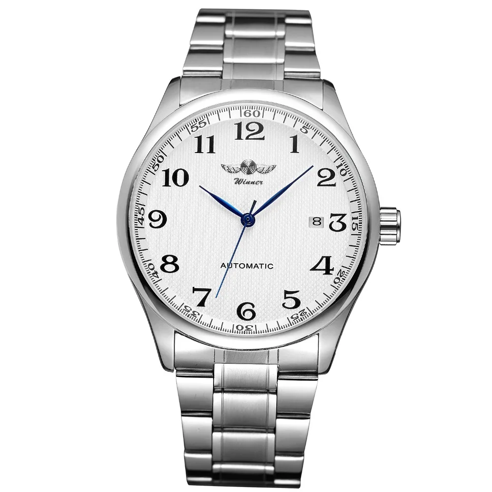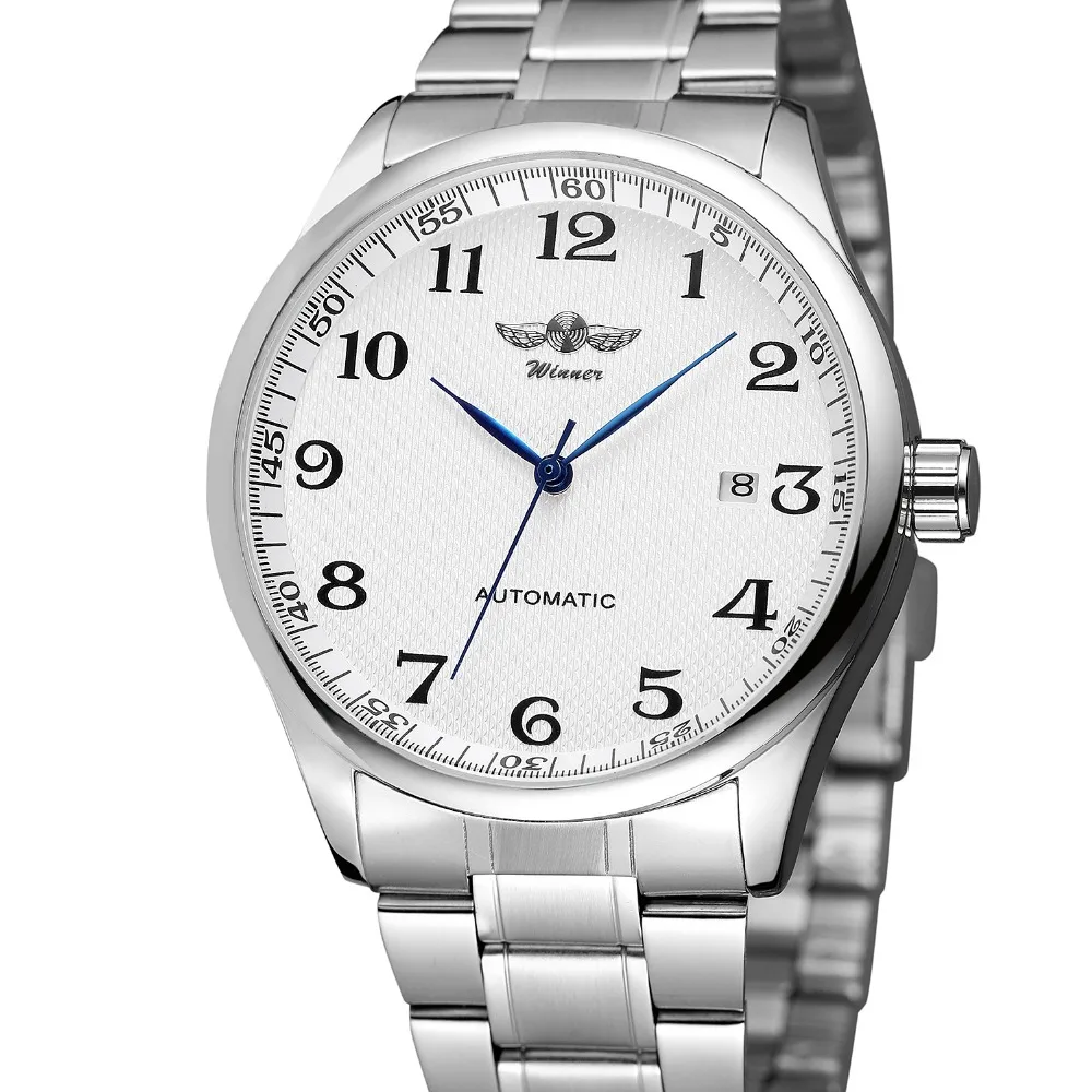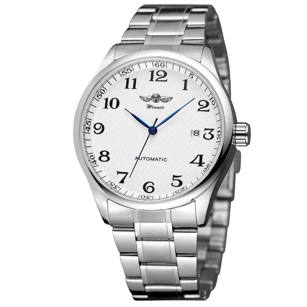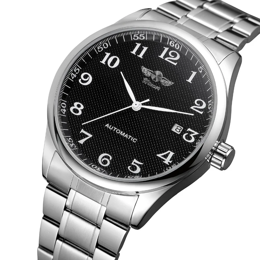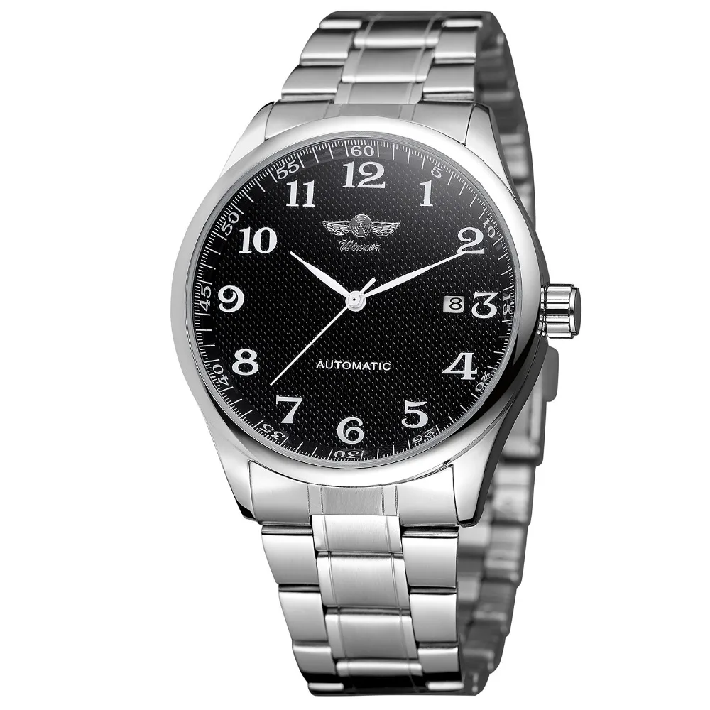 Часы наручные Winner Мужские автоматические, модные простые брендовые роскошные, из нержавеющей стали, с отображением даты, в деловом стиле, черные