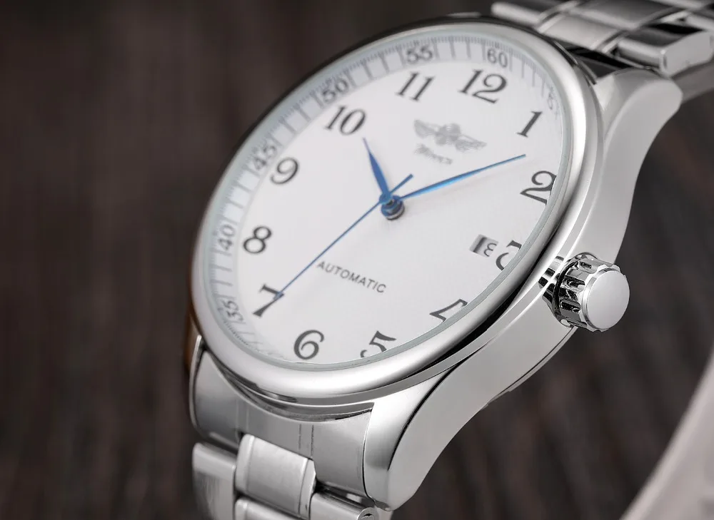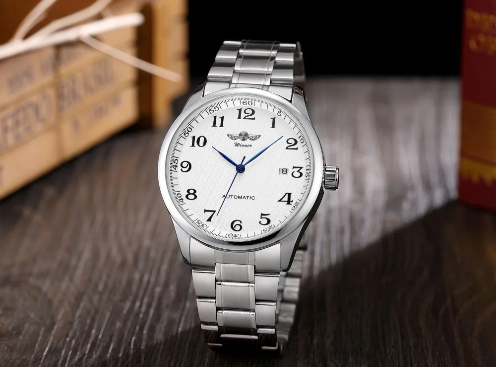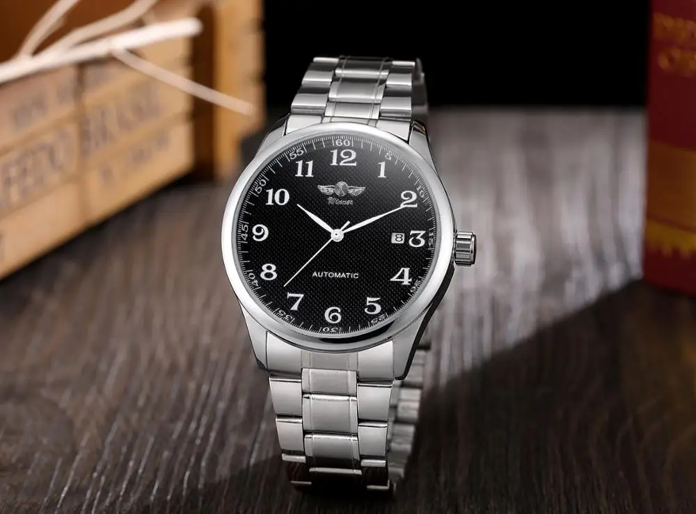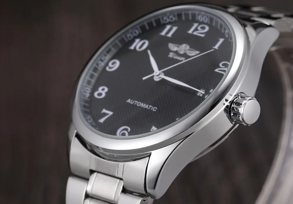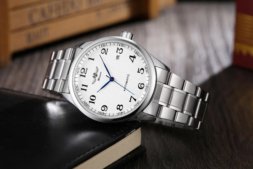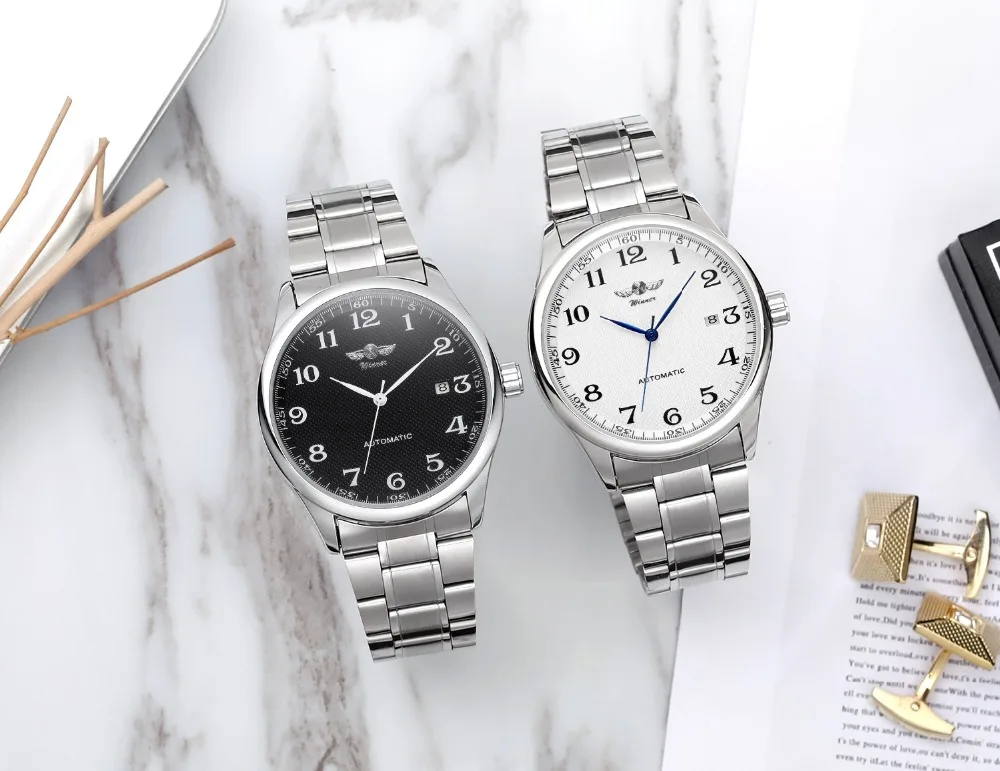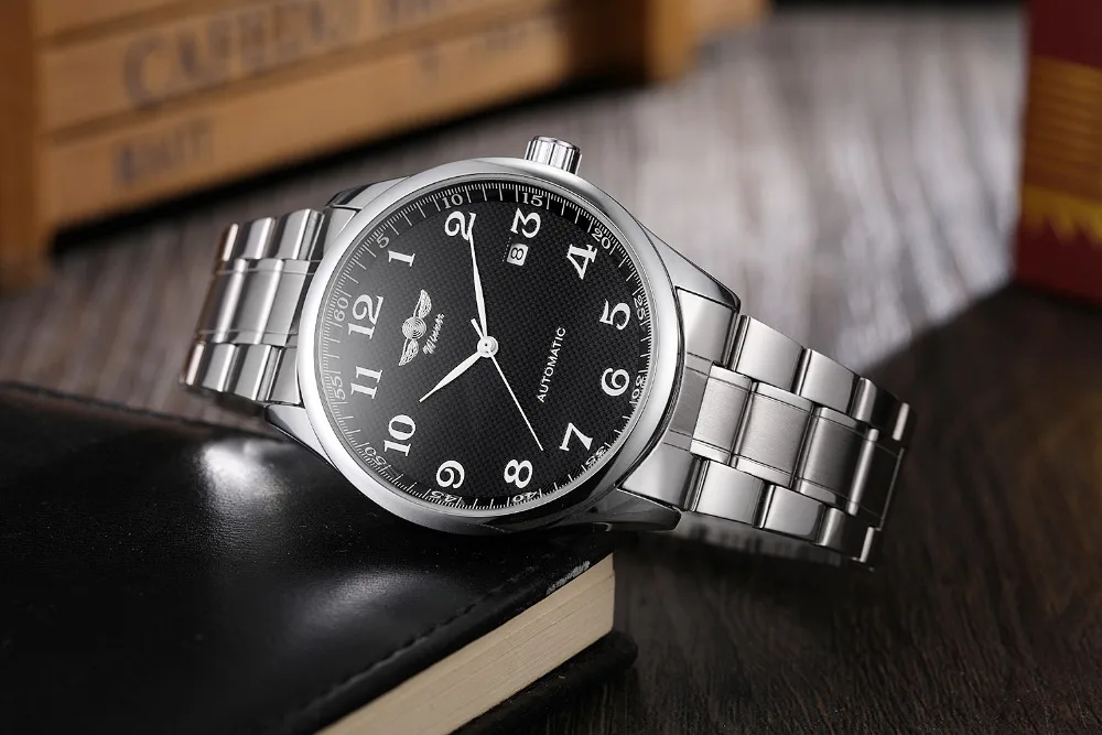 Часы наручные Winner Мужские автоматические, модные простые брендовые роскошные, из нержавеющей стали, с отображением даты, в деловом стиле, черные