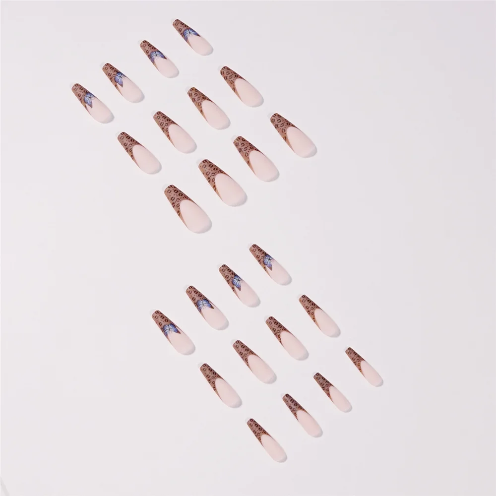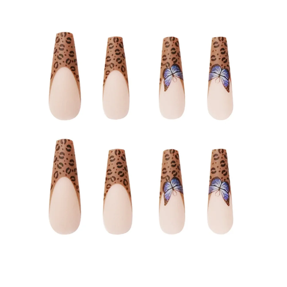 Накладные ногти каштановый коричневый леопард бабочка полное покрыт...