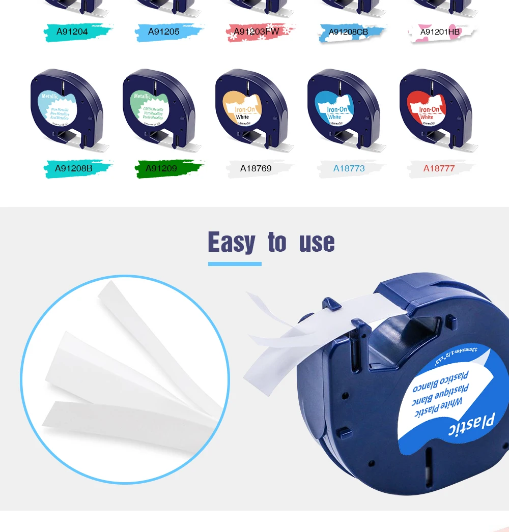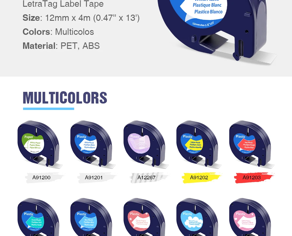 100 шт., 91201, 12267, 91200, совместимы с DYMO LetraTag LT-100H, ленты для этикеток, разные цвета, железная бумага, пластиковая лента для телефона