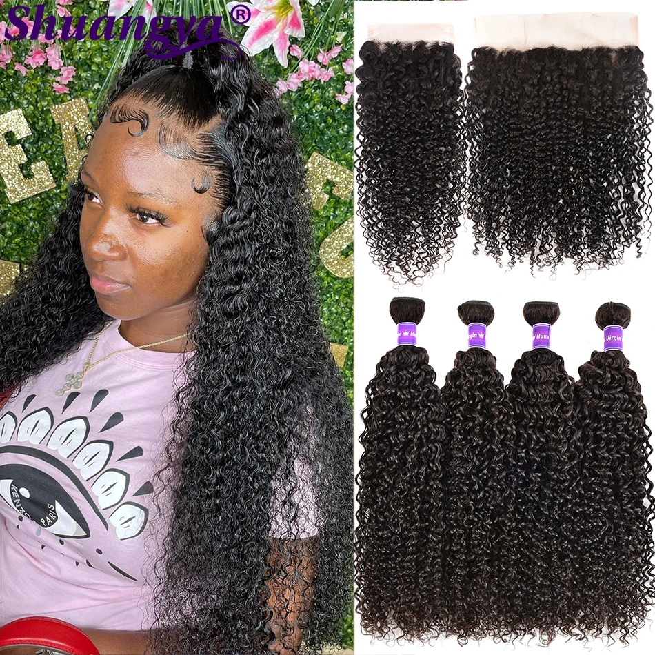 Прозрачные кружевные фронтальные пряди кудрявые вьющиеся волосы пряди с фронтальной перуанской вьющейся пряди человеческих волос с закрытием