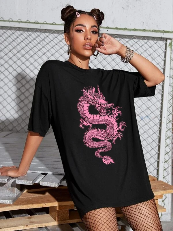Футболка женская хлопковая оверсайз с коротким рукавом и принтом