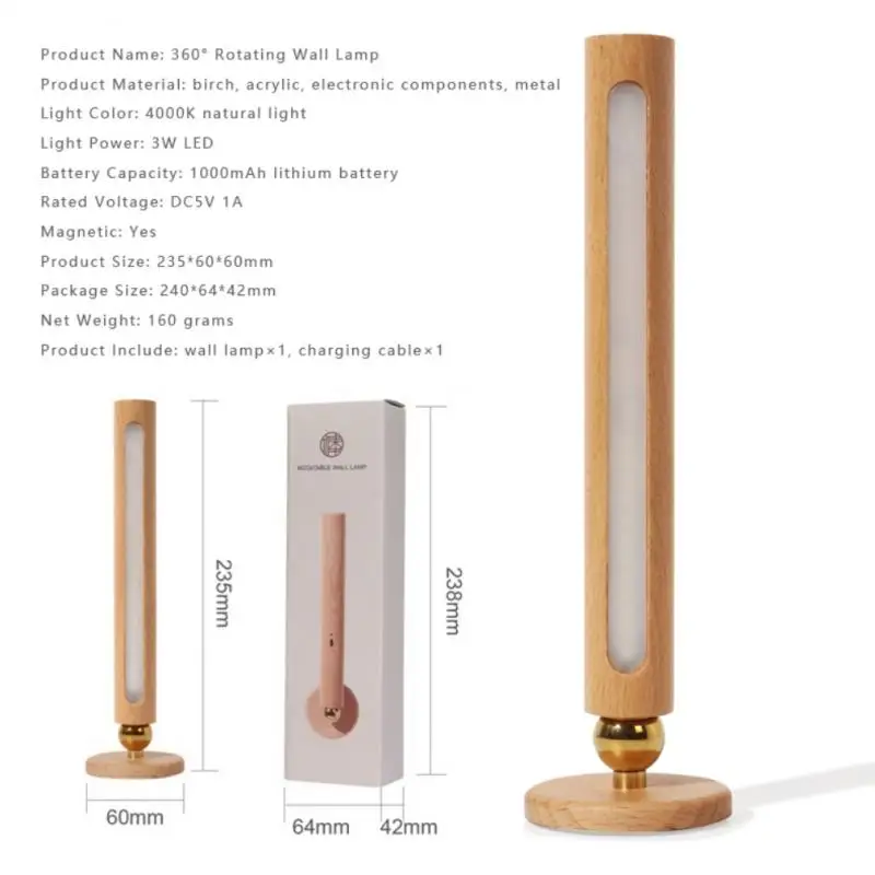Деревянная настенная лампа 360 , винтажное бра, прикроватный ретро-светильник, промышленный декор, столовая, спальня, светодиодный ночник