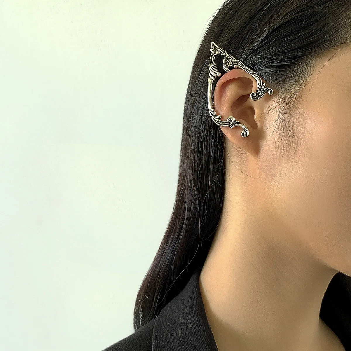 Женские серьги-каффы серебристого цвета, в стиле панк