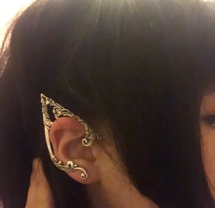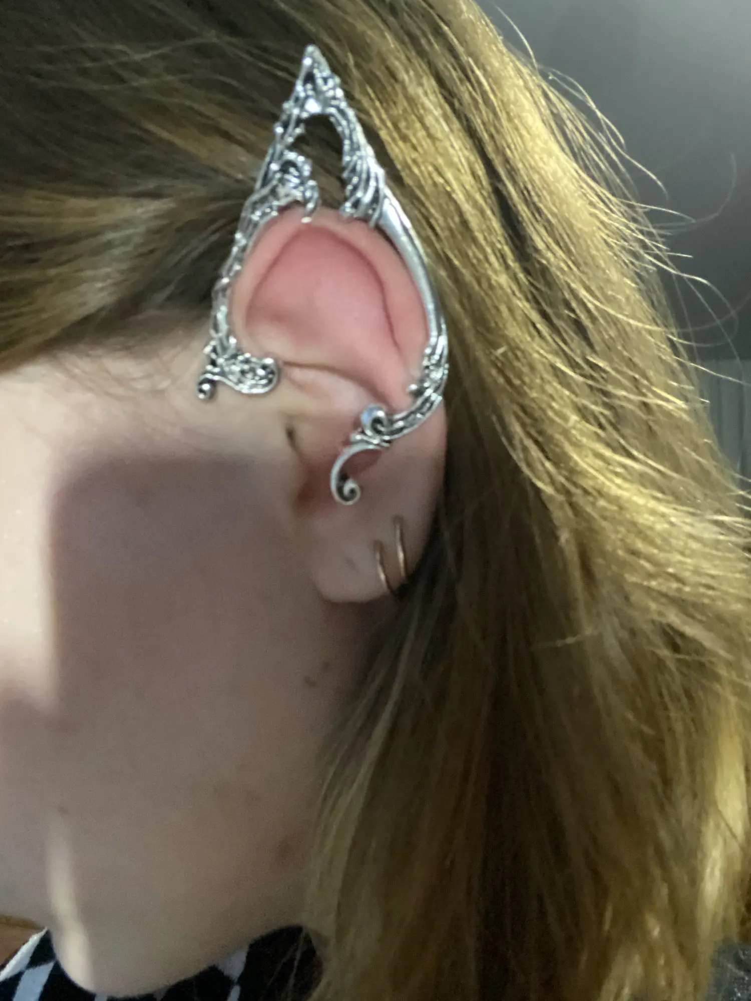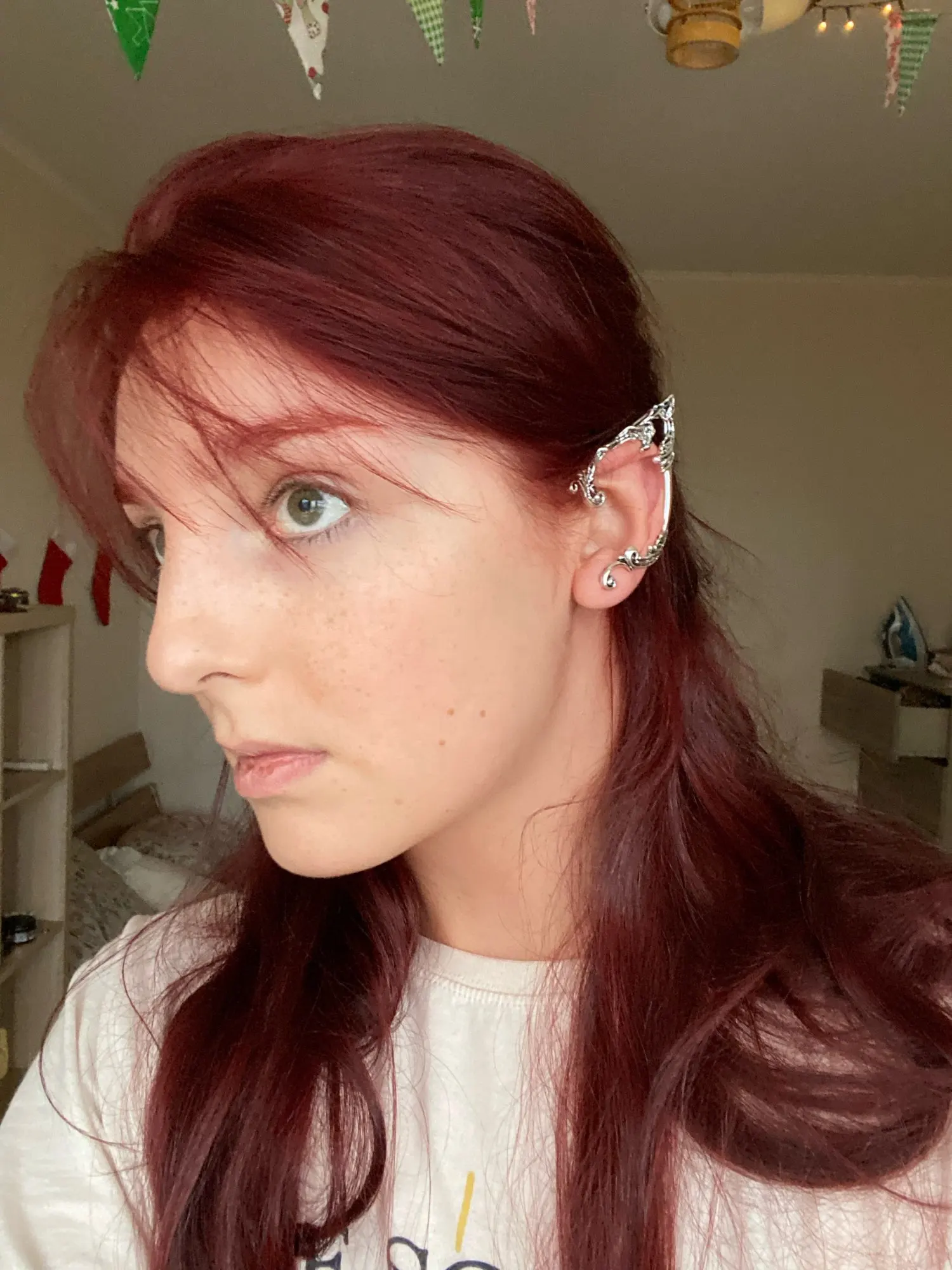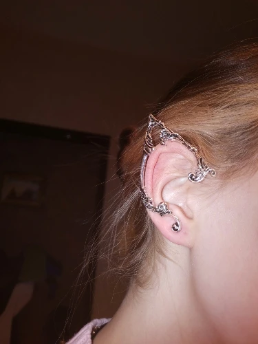 Не поняла как надевать сначала, но потом разобралась. К сожалению мое ухо не очень подходит для таких укрошений, но выглядит оно отрадно.