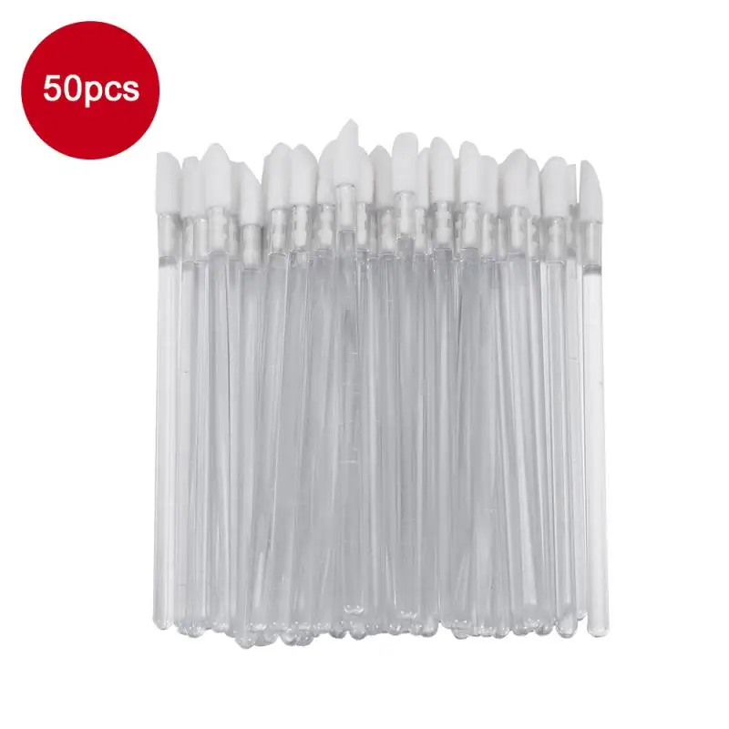 50 аппликаторов для губной помады: Флокированная волоконная головка с пластиковой ручкой;