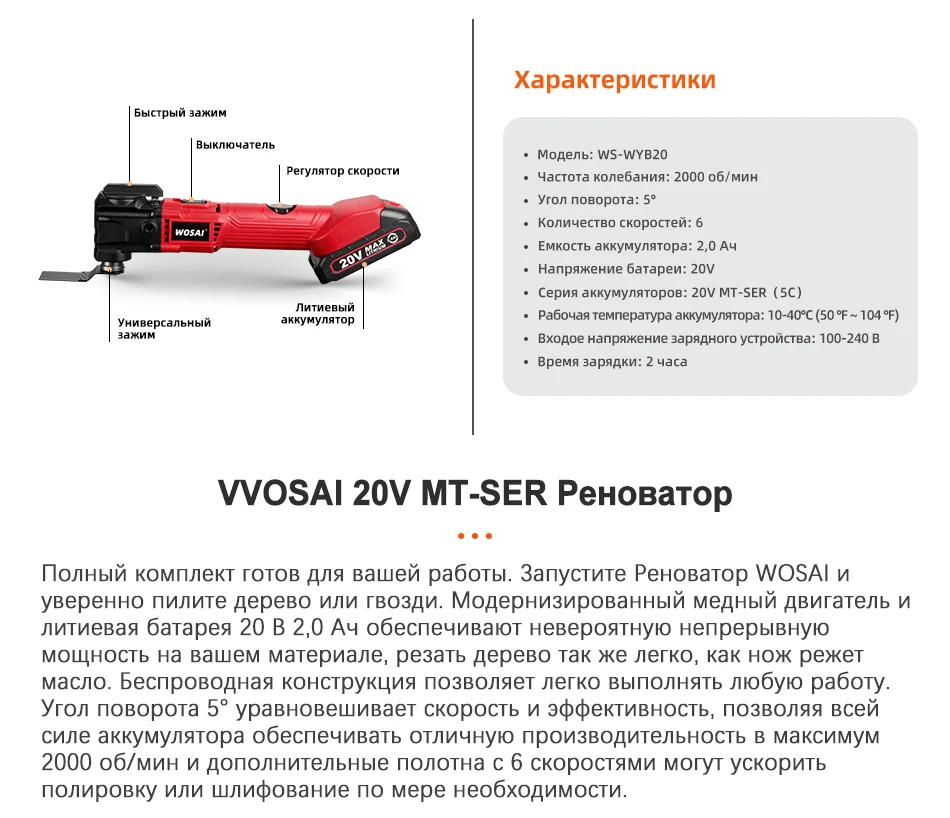 WOSAI 20 в Электрический многофункциональный Осциллирующий многофункциональный инструмент 6 переменная скорость беспроводной триммер пила ремонтный электроинструмент