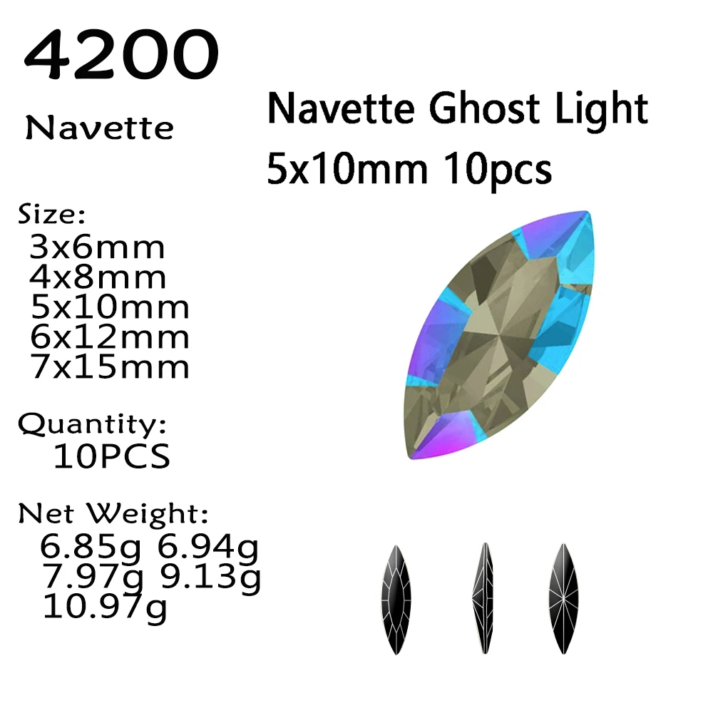 Светлый цвет призрака, лучшее качество Стразы и размер, кристалл без горячей фиксации, зеркальное стекло, блестящие украшения для ногтей