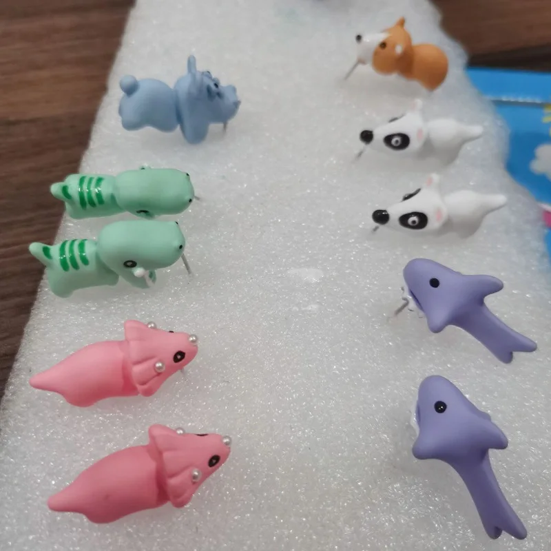 Серьги в виде маленького животного, динозавра, Акула, металлические...