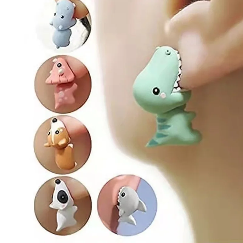 Модные и милые серьги в форме животных, динозавр, подходит для женщ...