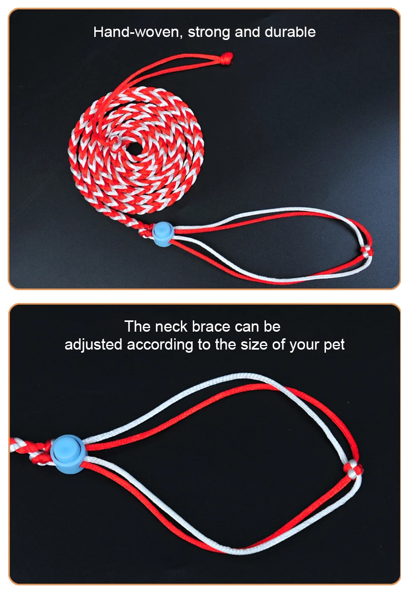 Есть два вида полос для веревки, один установлен на двух передних ножках. Подходит для больших домашних животных и послушных домашних животных. Второй метод-это очень озорной, совершенно несчастный питомец с веревкой и короткими ножками, маленький размер домашних животных.